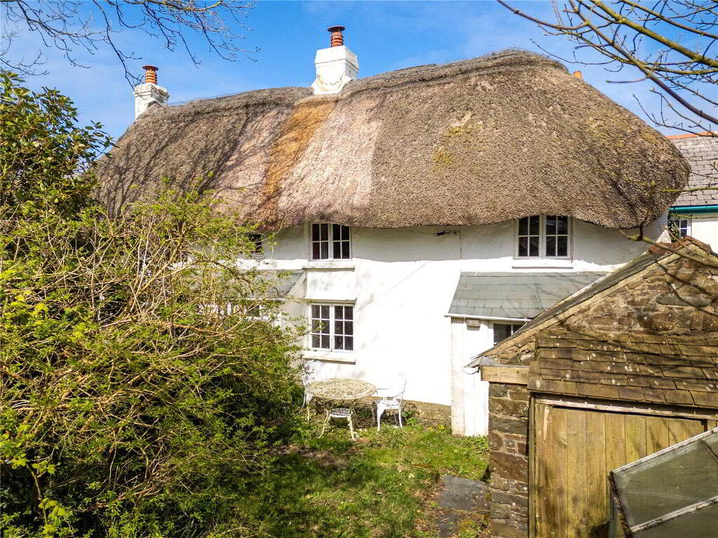 Unique thatched cottage in Higher Clovelly, North Devon, with 3 bedrooms, large garden, coastal views, ample parking, original charm. Excellent renovation potential at a competitive price.