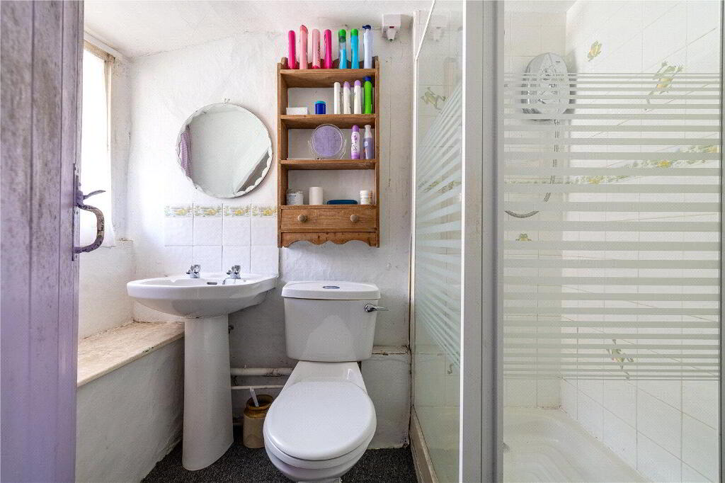 Upstairs, the accommodation includes 3 Bedrooms and there are some remarkable ocean views to be enjoyed. Bedroom 1 is notably spacious and benefits from an En-suite Shower Room. Bedrooms 2 and 3 are also generously sized, separated from Bedroom 1 by an internal wall reflecting the property's original layout.