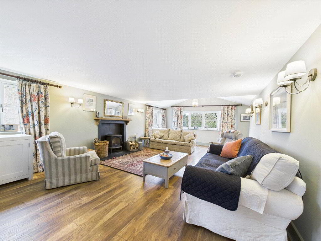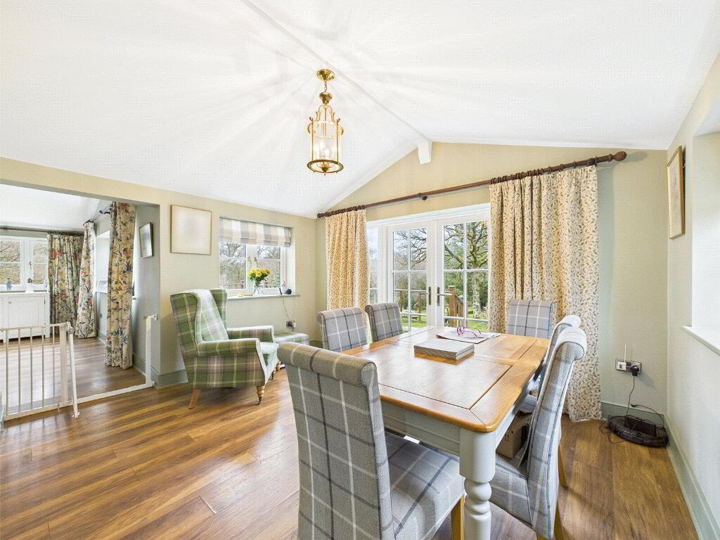 A pleasant triple aspect room enjoying views over the gardens. Ample space for a dining room table and chairs. - Living Room