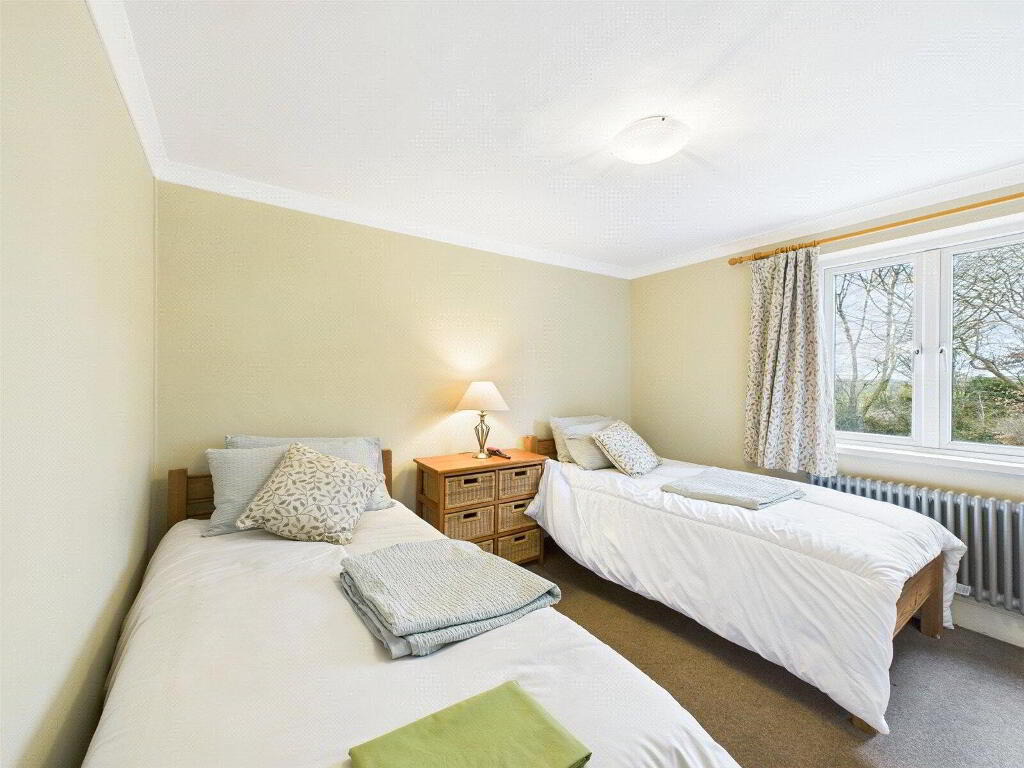 A spacious double bedroom, currently used as a twin room with window to front elevation. Built in wardrobe cupboard over the stairs. - Bedroom 3
