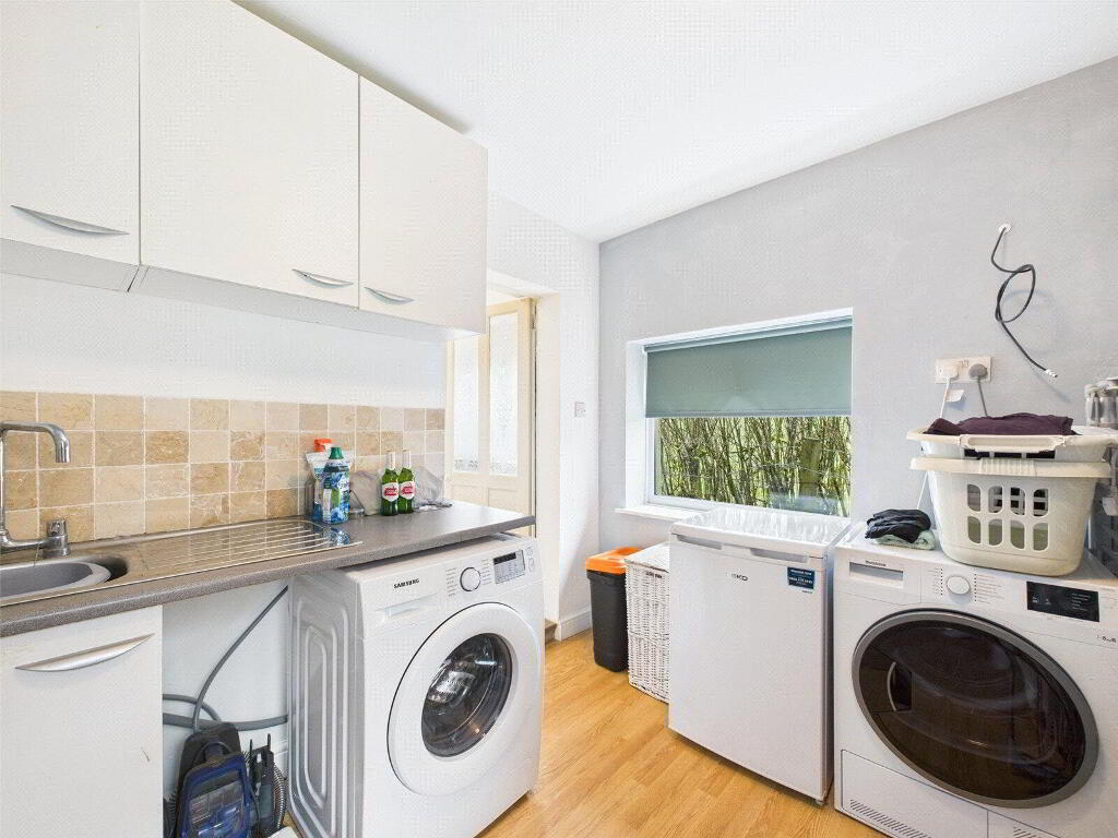A spacious utility room with fitted base and wall mounted units with work surfaces over incorporating a stainless steel sink drainer unit. Plumbing and recess for washing machine. Space for tumble dryer and additional freezer. Door to rear elevation. - Shower Room
