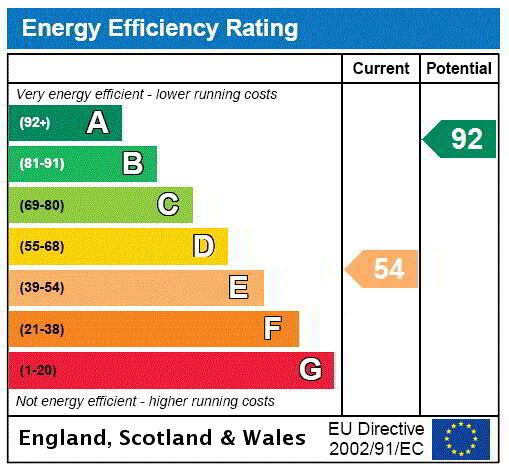 EPC rating E (54), with the potential to be A (92). Valid until March 2035.