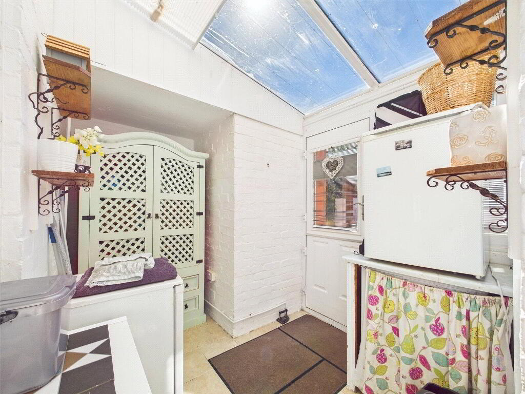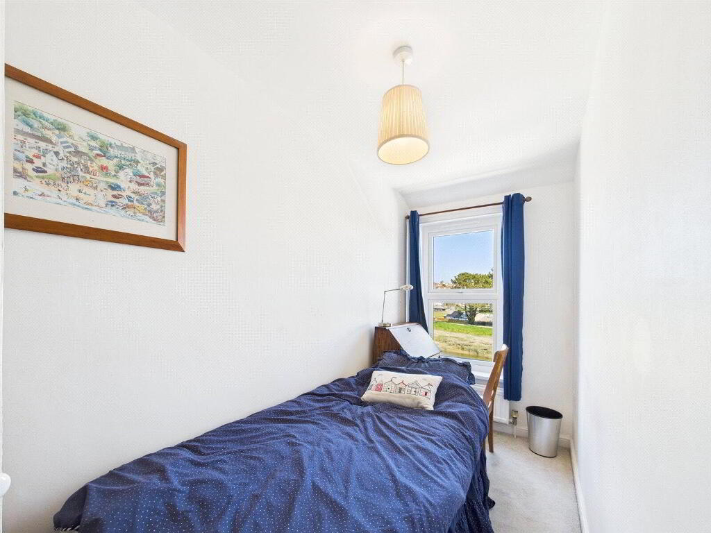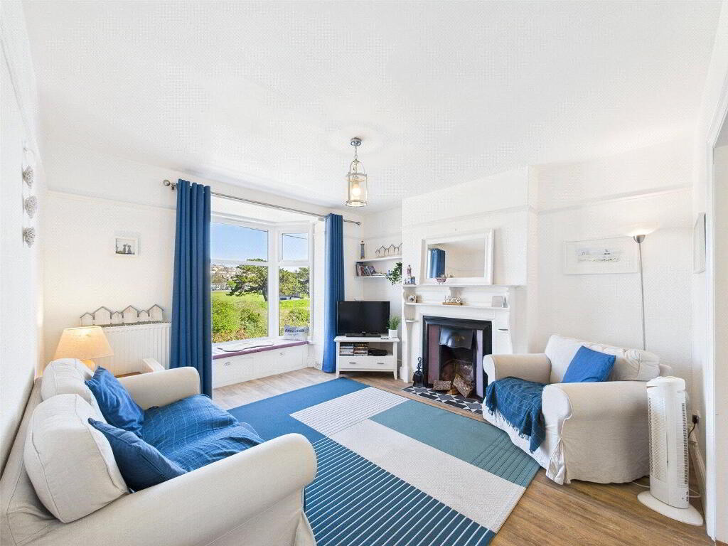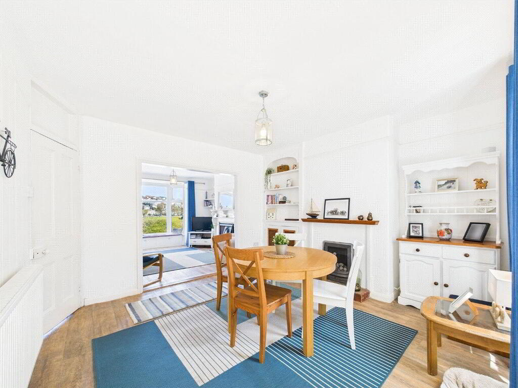 Thanks to the open-plan design, the living room enjoys lovely views of the Camel Estuary, adding a tranquil backdrop to the space. The living room itself is cosy, with an open fireplace that could easily house a wood-burning stove, creating a warm and inviting atmosphere. A handy utility/store room is located just off the main living area, providing extra storage space for white goods and other essentials.