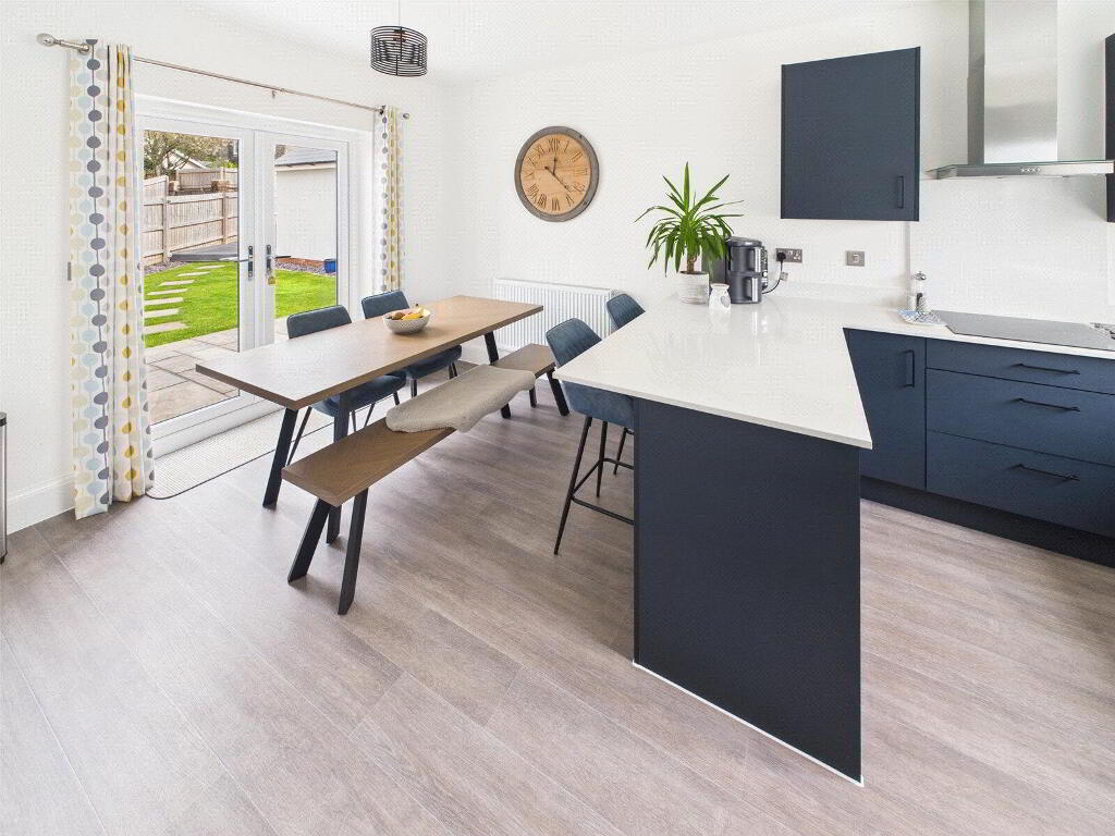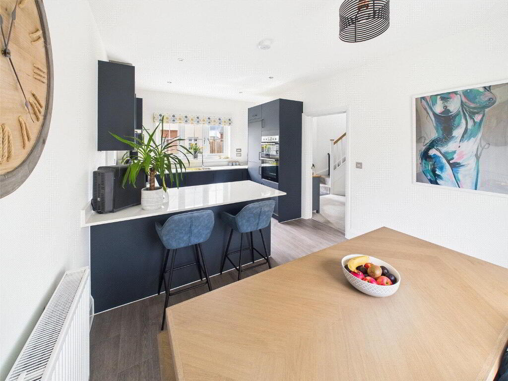 This stunning detached home in the highly sought-after Tavistock development offers luxury living at its finest. With a spacious entrance hallway, a sleek kitchen/dining area featuring high-end appliances and a quartz breakfast bar, and dual-aspect living room opening to a beautifully landscaped garden, every detail has been thoughtfully designed. Upstairs, three generous double bedrooms, including a master suite with en-suite, plus a modern family bathroom, ensure comfort and style. The meticulously landscaped garden with Indian sandstone paving, a sizable lawn, and composite decking is perfect for entertaining, while off-road parking for two vehicles adds convenience. Immaculately presented, with premium finishes throughout and the remainder of a 10-year NHBC warranty, this home is the epitome of modern luxury in a coveted location.
