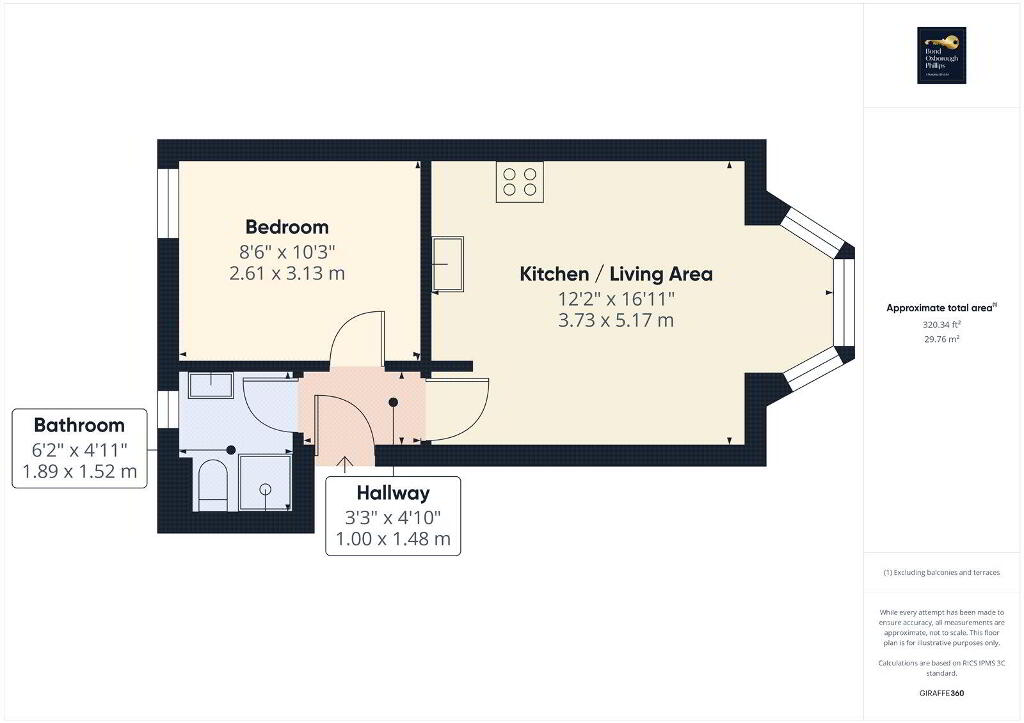 The property sits in a beautiful period house with four other flats and is set back from Rock Road. It features a light and open-plan lounge and kitchen with a big bay window. The kitchen is complete with a built-in fridge/freezer, dishwasher, and washing machine for added convenience. There’s one double bedroom and a bathroom, all thoughtfully laid out to make the most of the space.