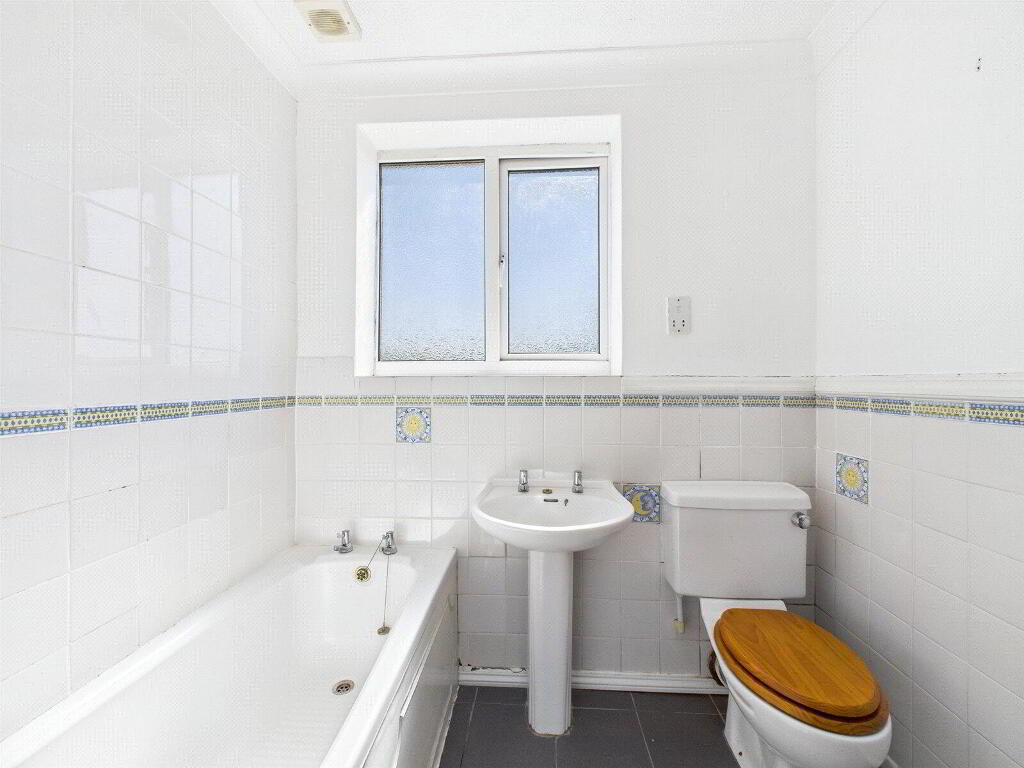 Fitted with pedestal wash hand basin and close coupled WC. Frosted window to front elevation.