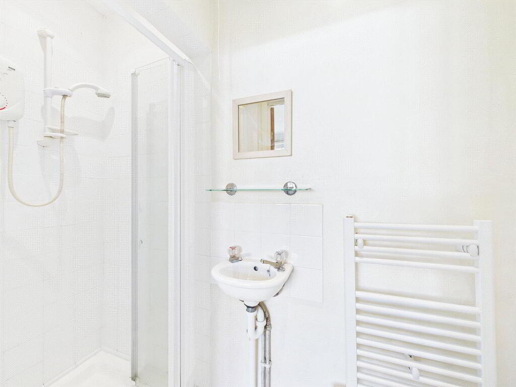 A matching 3 piece suite comprising shower cubicle with mains fed shower over, pedestal wash hand basin, concealed cistern WC and heated towel rail.