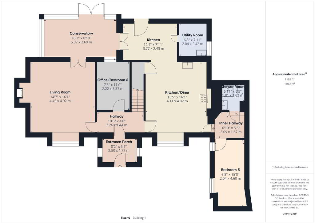 Provides access to the kitchen/diner, living room and office/bedroom 6. Stairs leading to first floor landing.