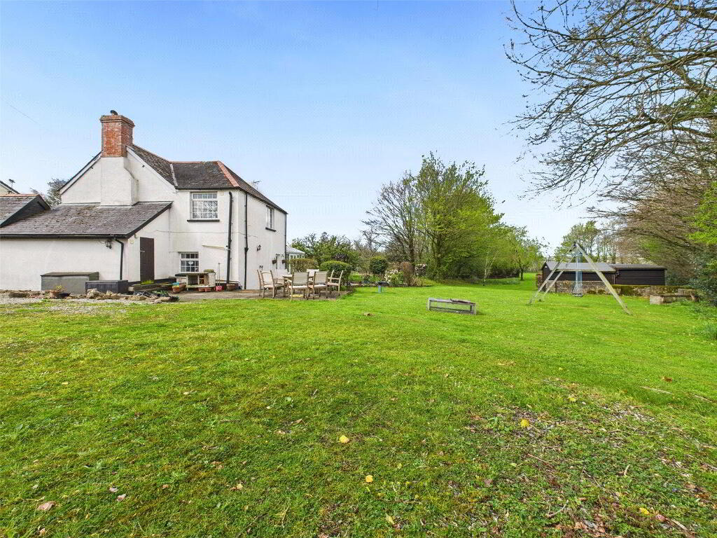 The property is approached via a shared drive which leads to a large off road parking area for 4/5 vehicles and gives access to the front door and external store. A side gate gives access to the large private and enclosed rear garden which is principally laid to lawn and bordered by a Devon bank and mature trees. Within the garden there is a feature pond, productive vegetable plot and 2 wooden sheds. Adjoining the rear of the property is a patio area providing the ideal spot for alfresco dining and entertaining, which is bordered by a range of mature flowers and shrubs. At the top of the garden there is a separate entrance which allow vehicle access to the garden and provides additional off road parking.