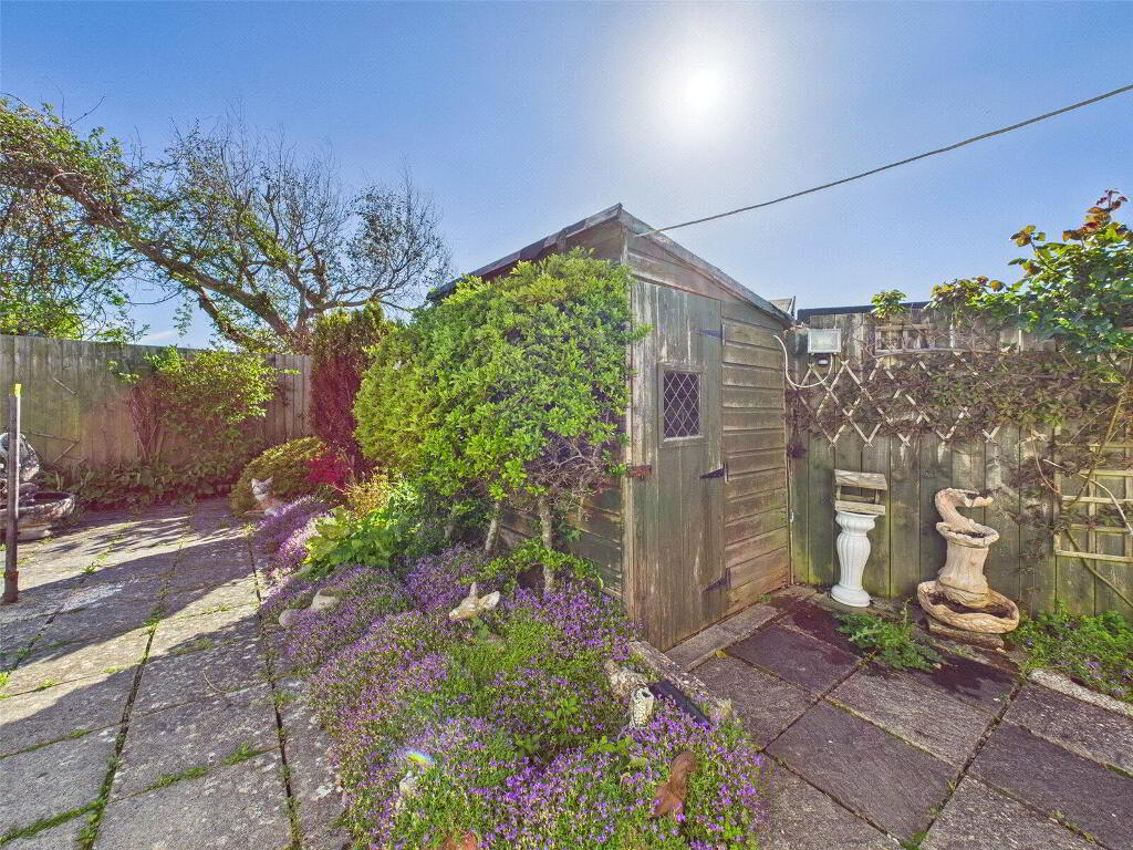 - A pretty south facing rear garden was desgined for ease of maintenance is principally laid to paving slabs with a variety of mature planting and flower beds. Timber garden shed. To the front of the property is a gated entrance driveyway and an attractive walled front garden.