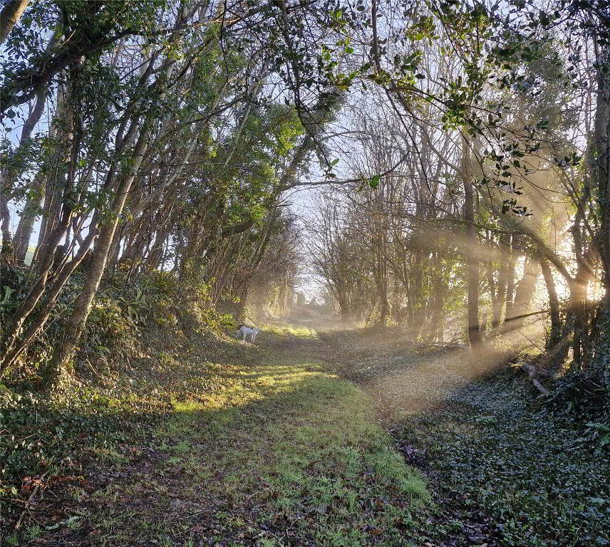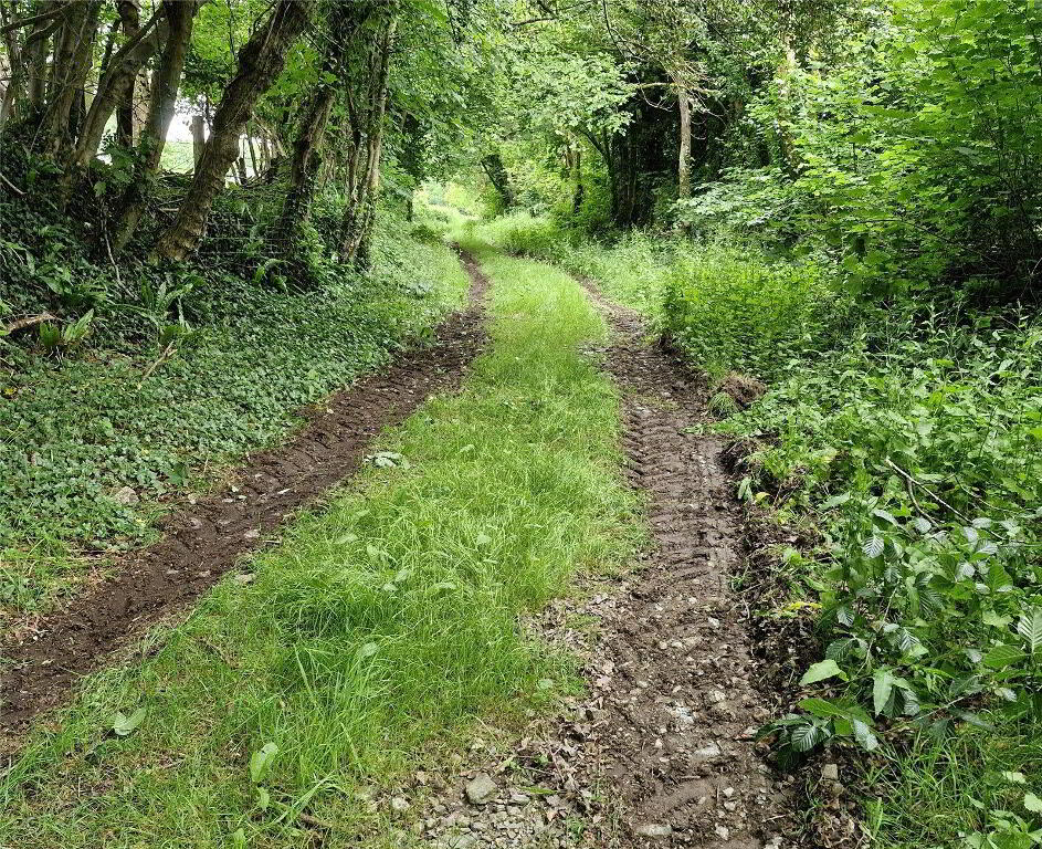 The land extends to approximately 5.31 acres, thoughtfully divided into two fully enclosed fields with post-and-rail and mature hedgerow boundaries. Ideal for grazing or schooling horses, these paddocks are level and well maintained. In the top field, there is a natural pond, providing a water source for wildlife and animals. The property also includes ownership of an adjacent green lane (approx. 0.22 acres), offering direct off-road access for riding, walking, or additional vehicle access—perfect for exploring the surrounding countryside.