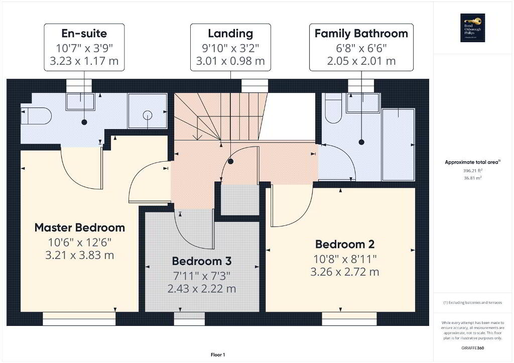 Moving upstairs, the first floor is home to three bedrooms, thoughtfully arranged to offer comfort and privacy. The main bedroom is a spacious double, benefiting from a modern en-suite shower room, while the second bedroom, also a comfortable double, is ideal for guests or children. The third bedroom, a versatile single, can serve as a cozy bedroom, home office, or nursery. A family bathroom is centrally located, offering a bath and modern fittings to service the two additional bedrooms.