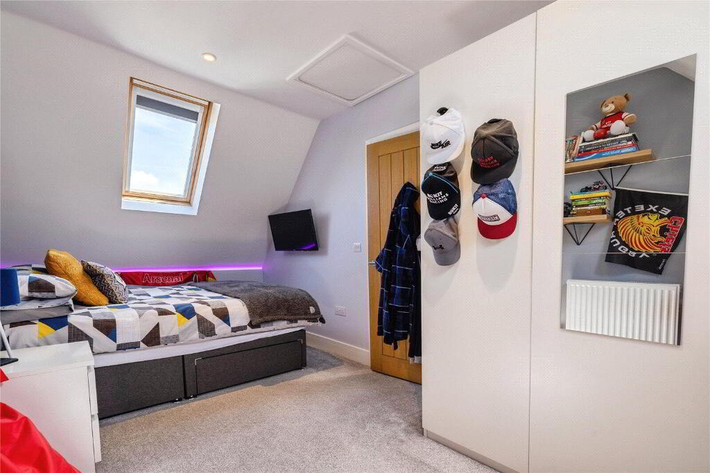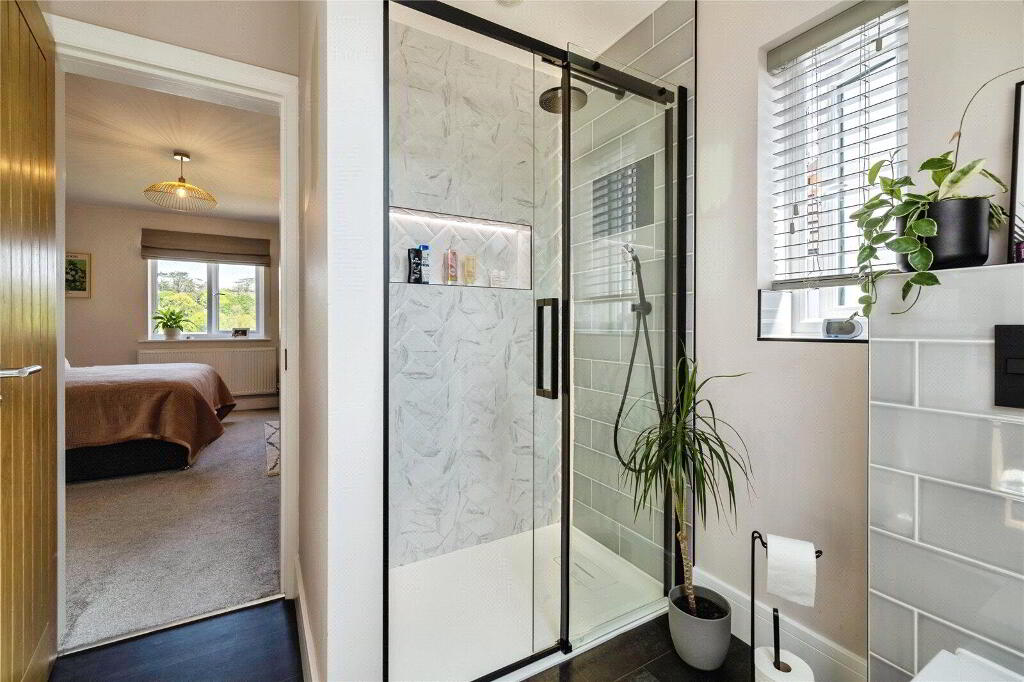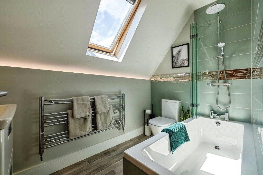 The Top Floor houses the luxurious Main Bedroom, featuring built-in wardrobes, USB sockets, a TV point and scenic views over the picturesque Kenwith Valley Nature Reserve. The room enjoys a private En-suite Bathroom, complete with drench shower, handheld shower, bath, WC and vanity basin with storage drawers complemented by a dual fuel heated towel rail. Two further well-proportioned Bedrooms occupy this level, serviced by the attractive Main Bathroom, which includes another drench shower with handheld attachment, WC, wash hand basin with drawers, a dual fuel heated towel rail and ambient concealed LED strip lighting.