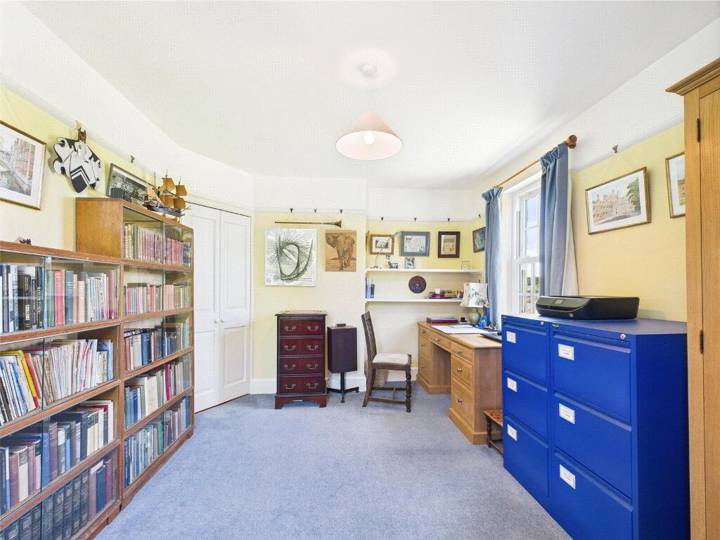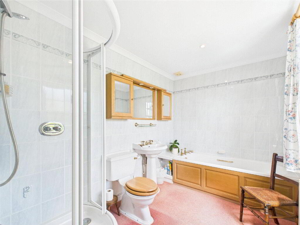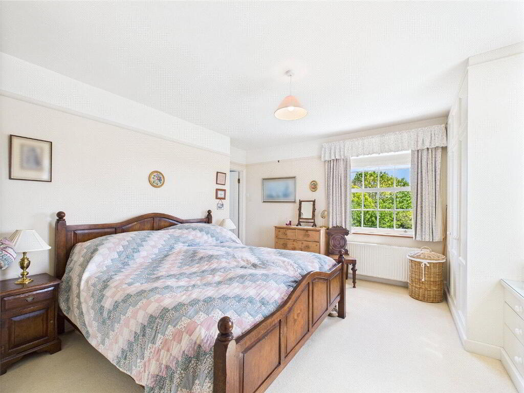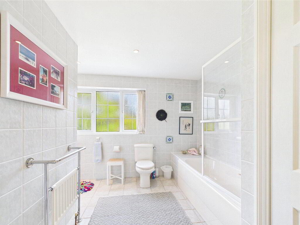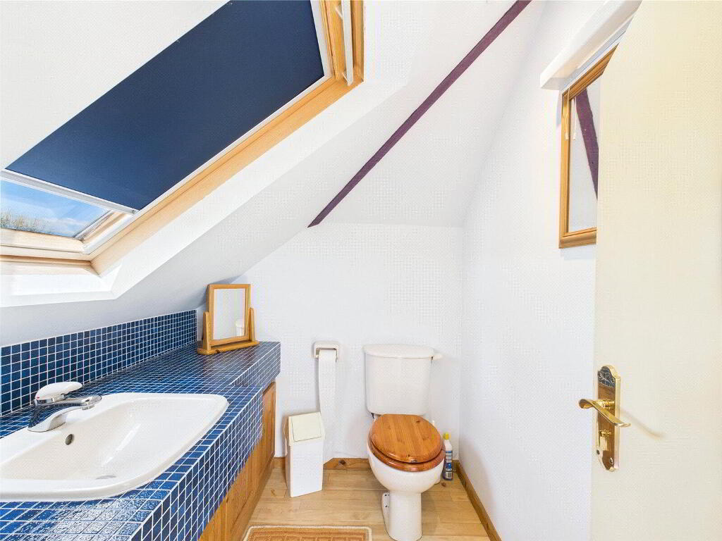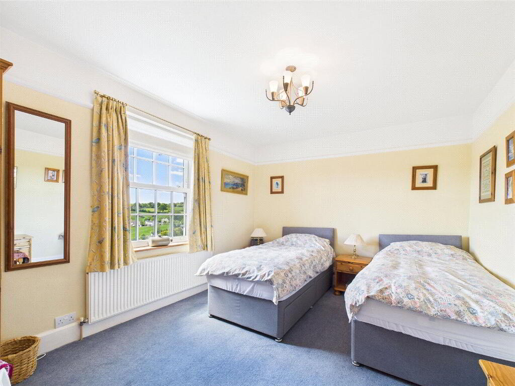 Upstairs, the accommodation continues to impress. There are three generous double bedrooms on the first floor, each benefitting from dual-aspect windows that frame the surrounding landscape like works of art. The principal bedroom enjoys the luxury of a private en suite bathroom with a shower and bath, while the remaining bedrooms are served by a beautifully presented family bathroom. A further staircase rises to the top floor, where a spacious fourth double bedroom is complemented by its own cloakroom, making it ideal as a guest suite, teenage retreat, or home office.