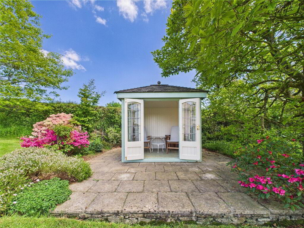 Externally, the grounds are a true feature of the property. The extensive gardens have been lovingly landscaped and exceptionally well cared for, offering a range of established planting, ornamental trees, and open lawns. The grounds include a productive vegetable patch, a greenhouse, and a charming summer house, perfect for enjoying warm evenings or quiet afternoons immersed in nature.