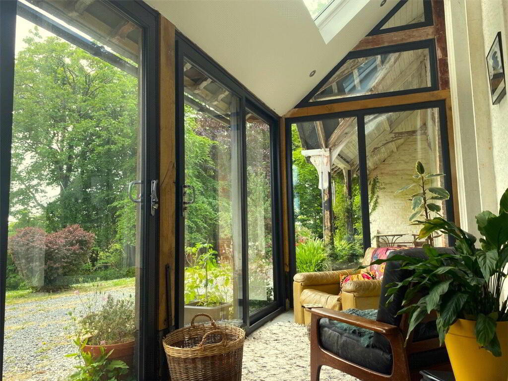 Double glazed sliding doors and windows overlooking the generous gardens.