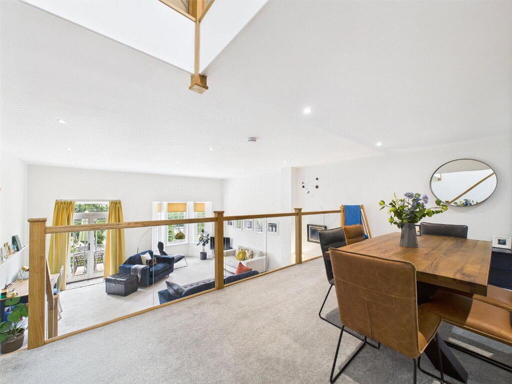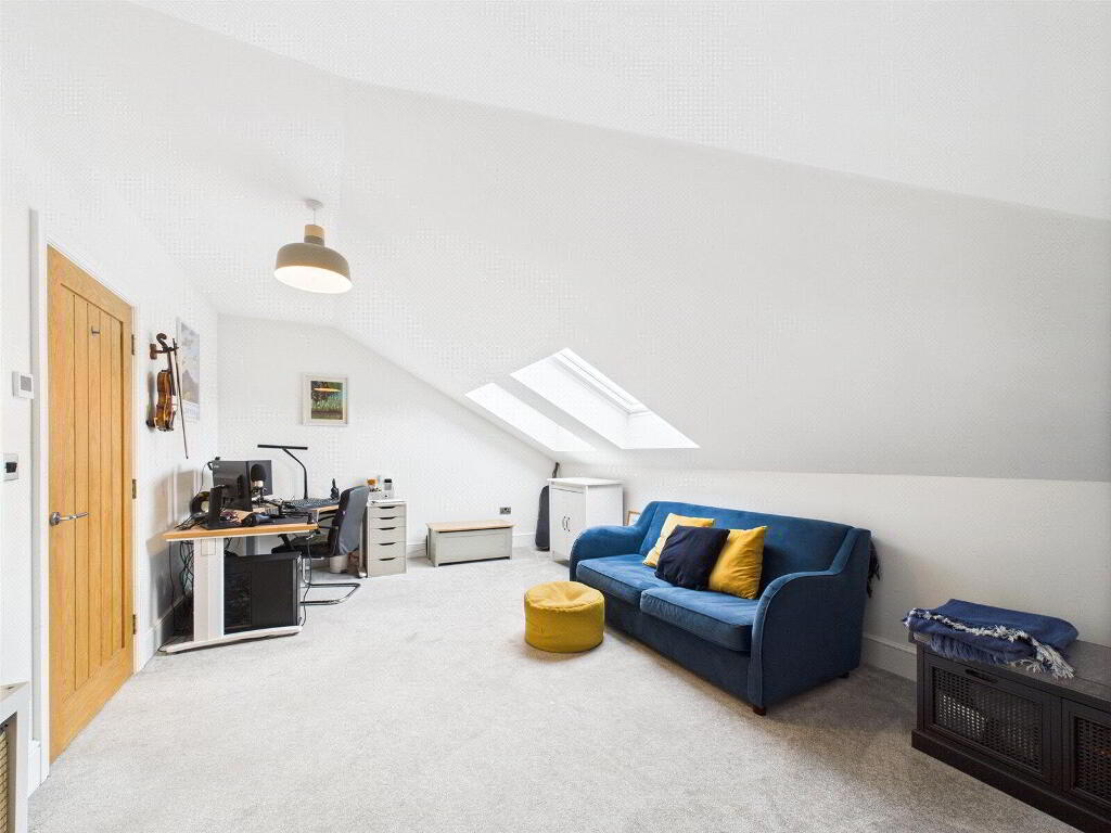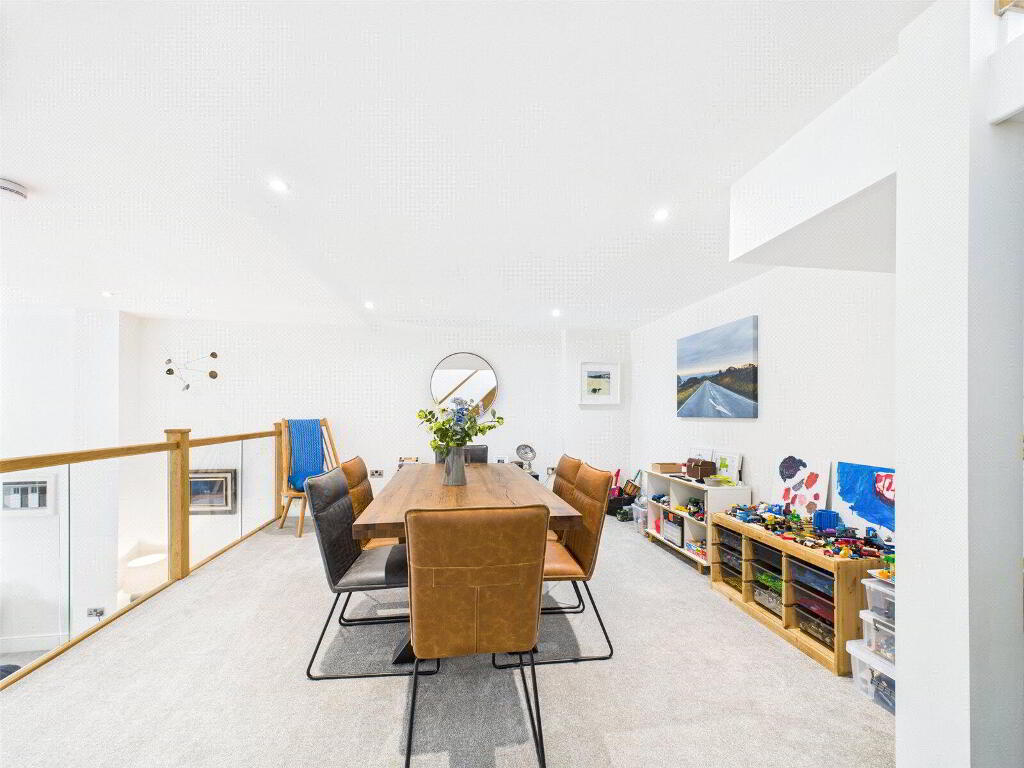 The bedroom accommodation is equally impressive. A luxurious master suite with en suite shower room occupies a quiet corner of the first floor, while two further bedrooms share a stylish Jack and Jill bathroom on the top floor—making it ideal for children or guests. A fourth bedroom and additional reception or office space provide flexibility for home working or additional family needs.