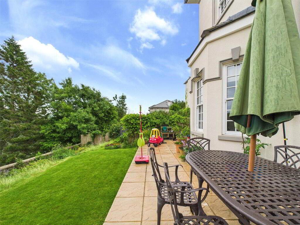 Outside, the terraced garden offers a peaceful spot to relax and take in the sweeping views across Tavistock. Private parking is included, and the elevated position ensures fantastic outlooks over the town’s historic rooftops.