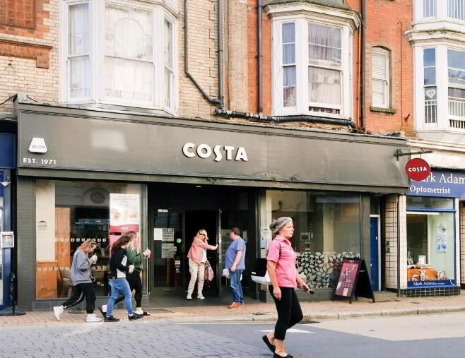 The property spans both ground and first floors, featuring generous internal space ideal for a range of commercial ventures. Previously Costa Coffee were operating as a café, the unit is well suited for hospitality or retail use. A large front-facing double-glazed windows provide excellent visibility and natural light, enhancing the building’s appeal to tenants and customers alike. Currently let under a 10-year agreement at £15,000 per annum, expiring in 2027