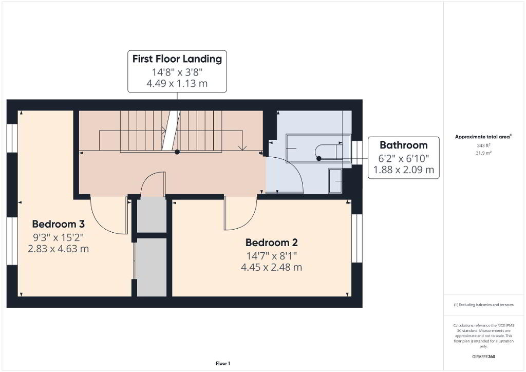 Gives access to bedrooms 2 & 3, the family bathroom and airing cupboard. Stairs leading to 2nd floor landing.