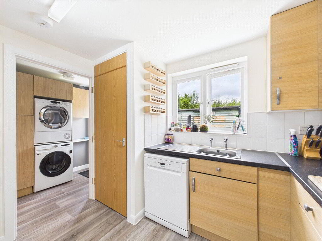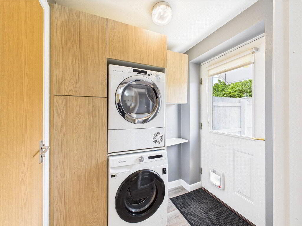 Fitted with a range of storage cupboards. Space and plumbing for washing machine and tumble dryer. External door gives access to the rear garden.
