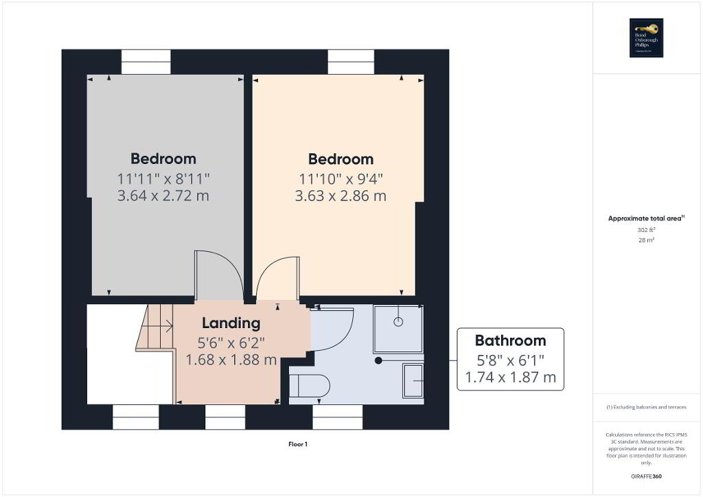 Upstairs, a naturally light-filled landing leads to two double bedrooms, both well-proportioned and finished with a clean, contemporary feel. The modern family bathroom includes a shower, WC, and basin—all tastefully appointed.