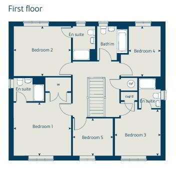 Upstairs, you'll find five well-proportioned bedrooms. Three benefit from their own en suite bathrooms, while the remaining two share a stylish family bathroom.