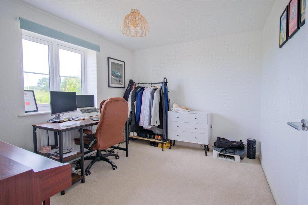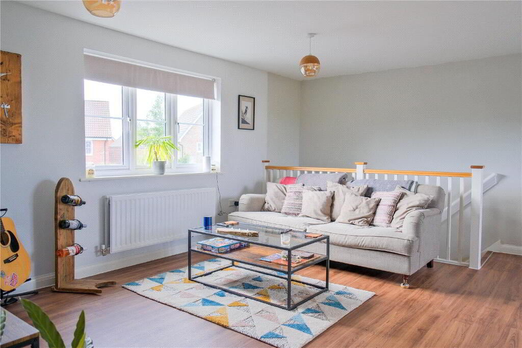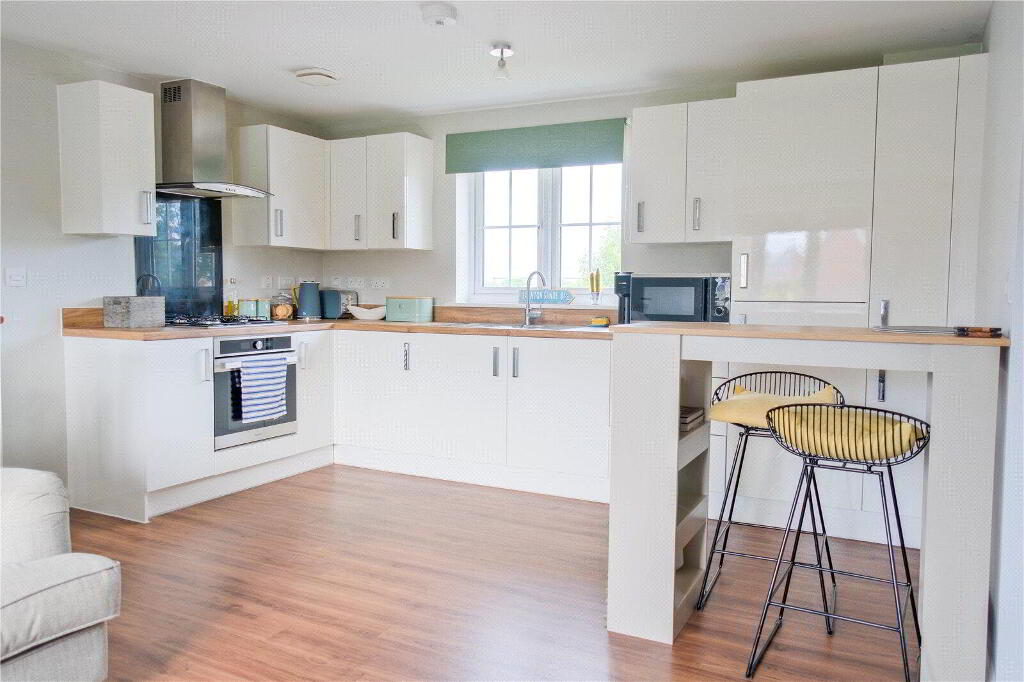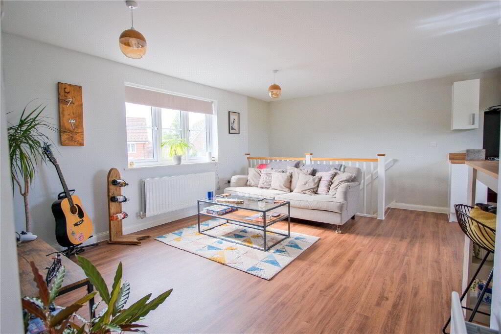 Light and airy two bedroom first-floor coach house with garage, off-street parking, built by Bovis Homes 6 years ago with remainder of 10-year NHBC warranty.
