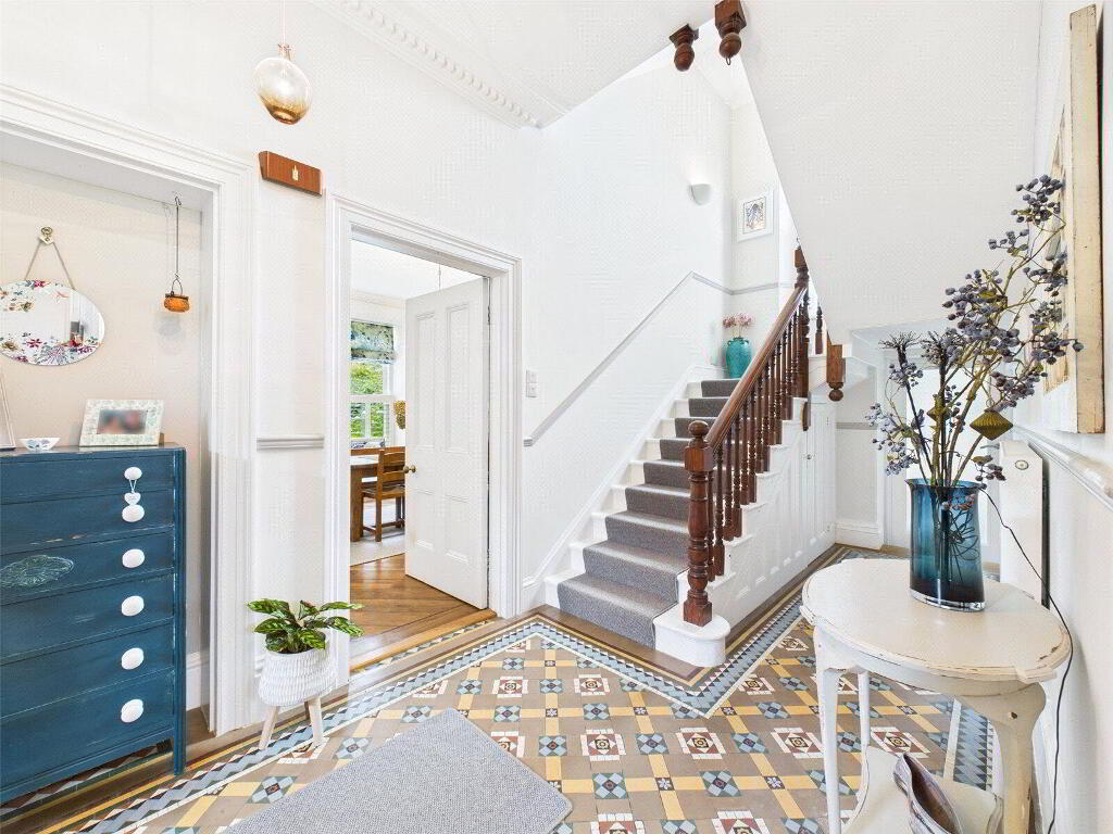 Step inside through the welcoming entrance hall, where original tessellated floor tiles, a sweeping staircase with half landing, and a stunning stained glass window immediately set the tone for this exceptional home. From here, doors lead to all principal ground floor rooms.