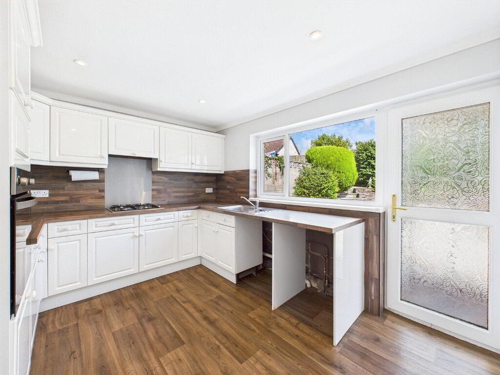 The kitchen completes the ground floor, offering modern appliances, ample cupboard and worktop space, and access to the rear garden via a useful porch area.