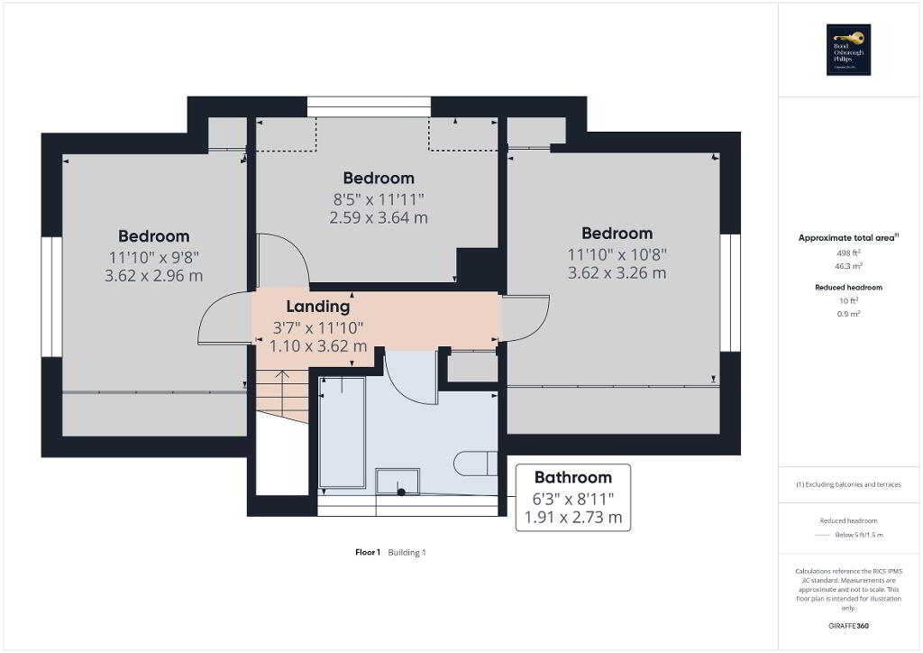 Upstairs, you’ll find three further bedrooms and a contemporary family bathroom. Two of the bedrooms benefit from built-in wardrobe storage, while the bathroom includes a bath with overhead shower, WC, and wash basin — all presented in a modern finish.