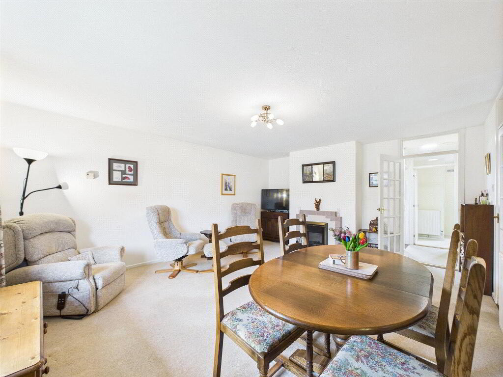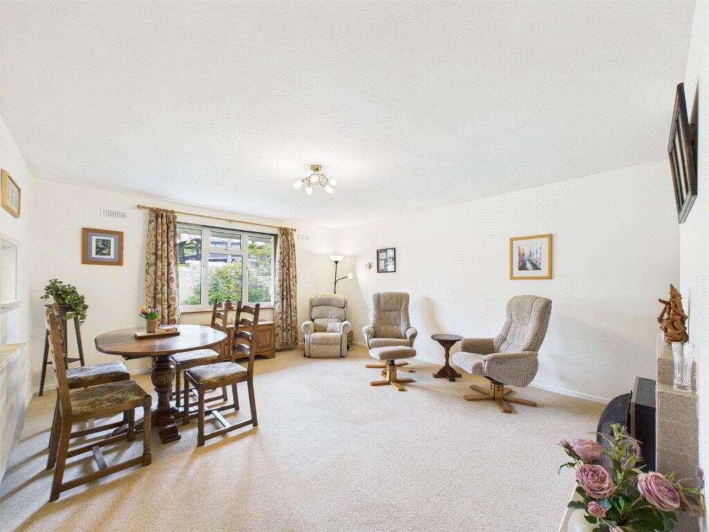 Further into the home, the open-plan living and dining room forms the true heart of the property. A large window frames pleasant front garden views and fills the room with light, creating a warm and sociable environment ideal for relaxing or hosting guests.
