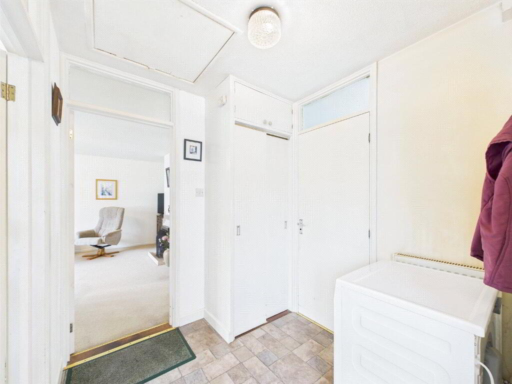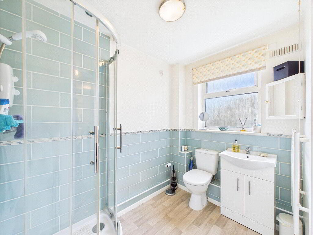 Upon entering the property, you're welcomed into a light and functional entrance porch, complete with a large storage cupboard — perfect for coats, shoes, and outdoor essentials. This leads into a central hallway, where you'll find a modern family bathroom fitted with a shower unit, WC, and wash basin.
