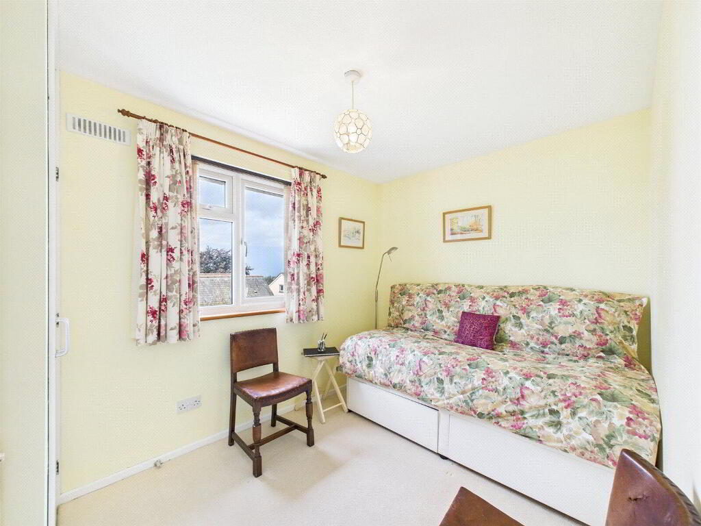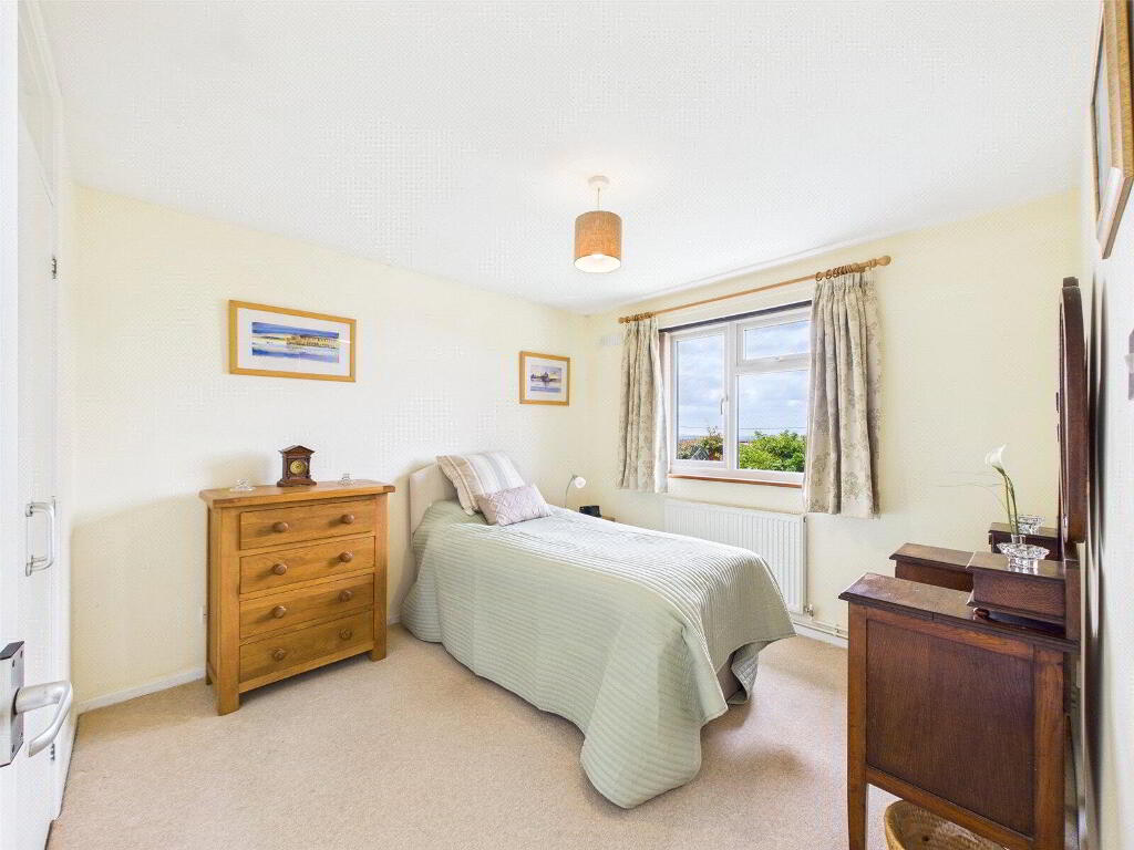 To the rear of the bungalow, a second hallway leads to two comfortable double bedrooms, each benefitting from built-in wardrobes and enjoying delightful views over the rear garden and the rolling Cornish countryside beyond.