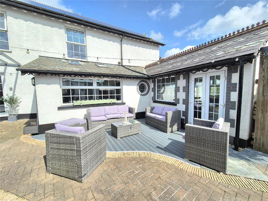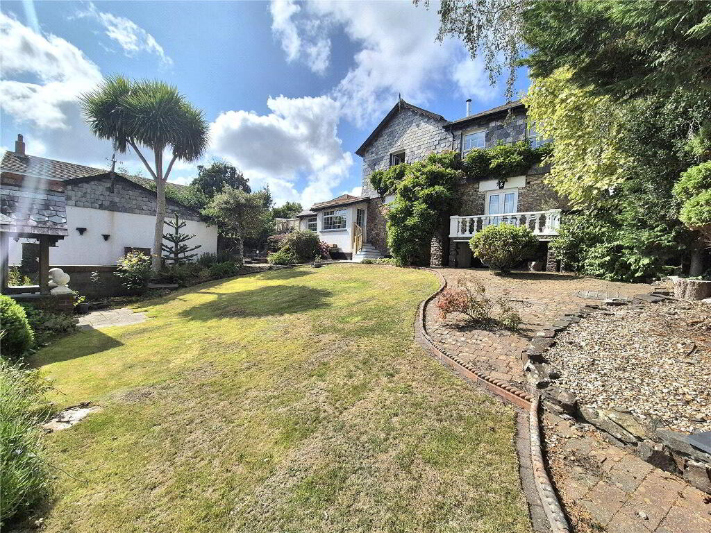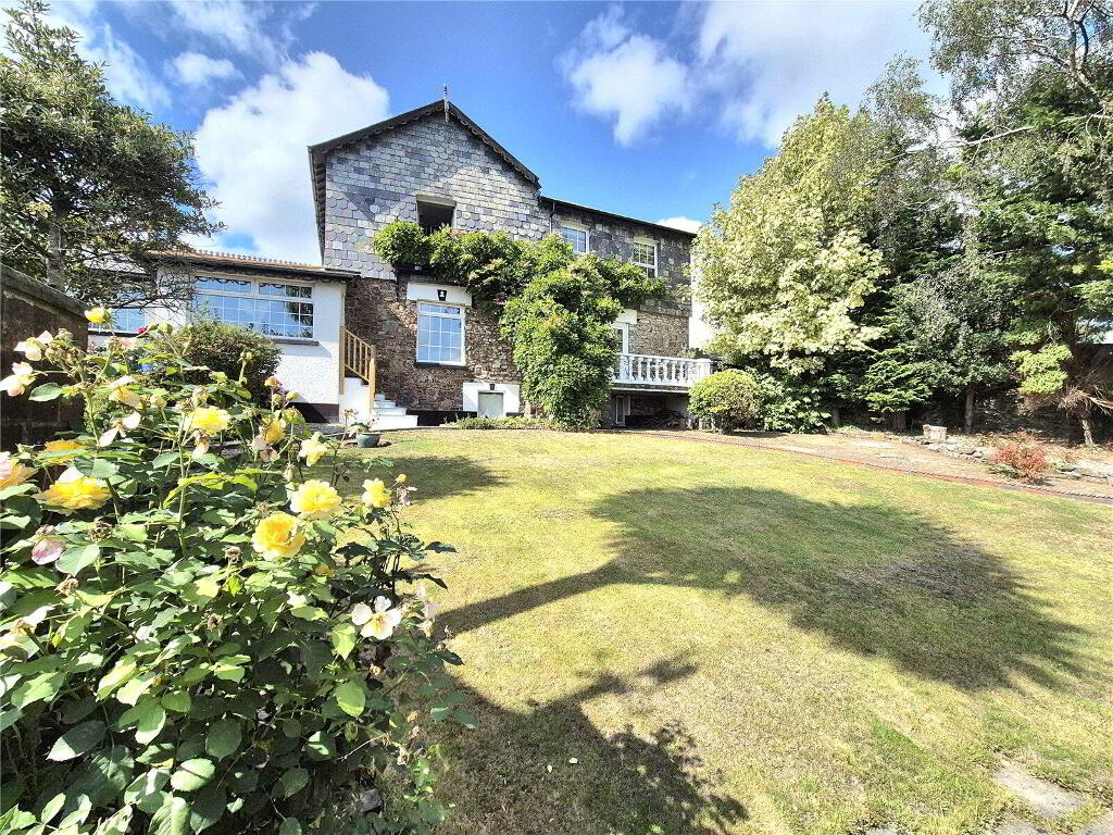 Big. Very Pretty. Exceptionally well presented and hidden in plain sight. By this I mean that what you notice when you pass the home is less than half the story. One might never imagine that behind the handsome doorway there are six bedrooms, six bathrooms, six reception rooms, a large and stylish kitchen/dining room (most with beautiful views) and to top it off, pretty gardens, a double garage, driveway and various outbuildings all within a short stroll of the Town Centre. The home is grade 2 listed, has a classic and interesting double fronted façade with an equally stunning slate tiled side elevation (which begins to highlight its size)