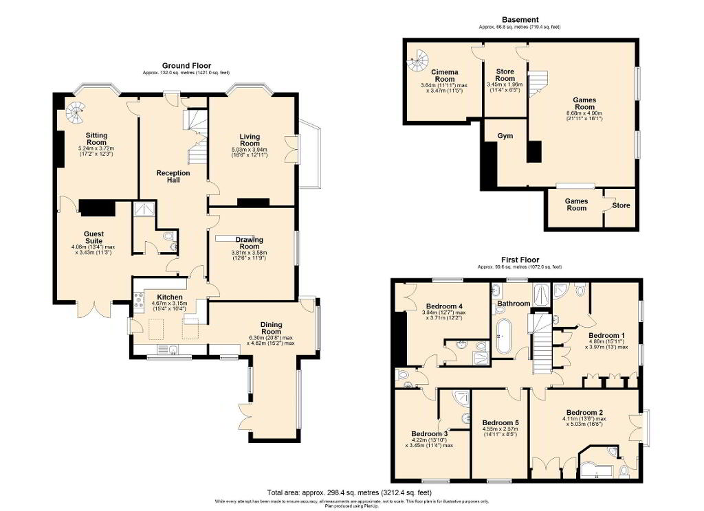 The home has provided income in the past as a Bed and Breakfast from time to time as well as currently an air bnb and I believe would make a perfect “ready to go” business proposition. Not least because two of the reception rooms are used as a games/entertaining room/gym and snug/cinema room respectively. The larger games room also features the old water well, cased in glass to make a stunning and safe feature. The staircase is also retractable which allows full cue room about a full-size snooker table should you so wish. It truly is a fantastic party room. The staircase to the cinema room is also a feature. It is a bespoke made, decorative Iron spiral leading from the sitting room, passing the gorgeous fireplace and feature timber panelling. Not to be out done, the living room also has a feature wood burner and surround and double doors out to the balcony to take in the views. From both the courtyard garden and the hallway you have access into a ground floor bedroom complete with its own ensuite shower room and a doorway into the sitting room, easily allowing it to become a self-contained flat offering the ideal space for a relative or as having further income potential. The first floor bedrooms each have a unique feel and some feature vaulted ceilings, four are ensuite and the remaining double has the benefit of the four-piece bathroom with roll top bath itself. Attention to detail is evident both in and out of the home. The garage is even immaculate. Furthermore, and reassuringly the home has been looked after by those who know and understand period properties and it has wanted for nothing. I genuinely love this home. If not for all the practicality, for the pure smiles at what secrets it hides behind almost every door and around every corner.