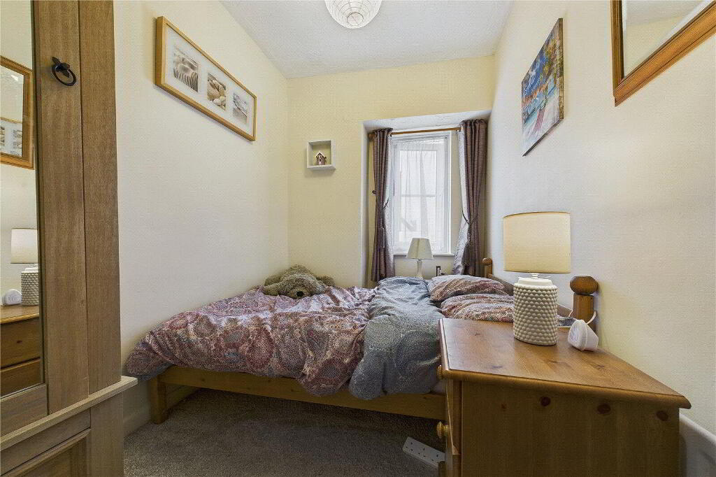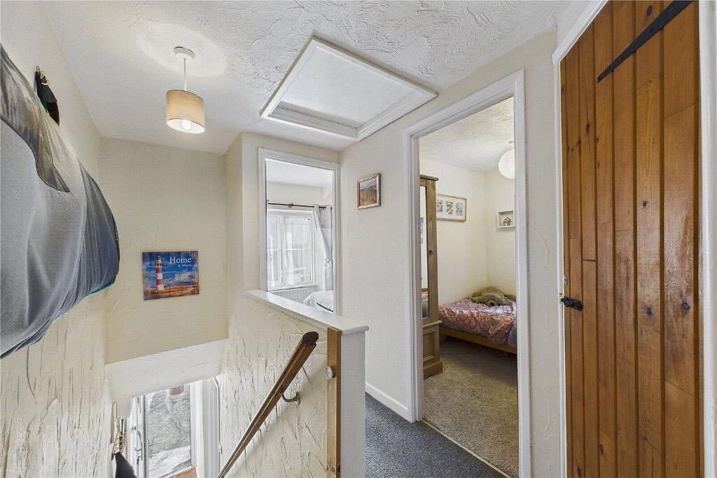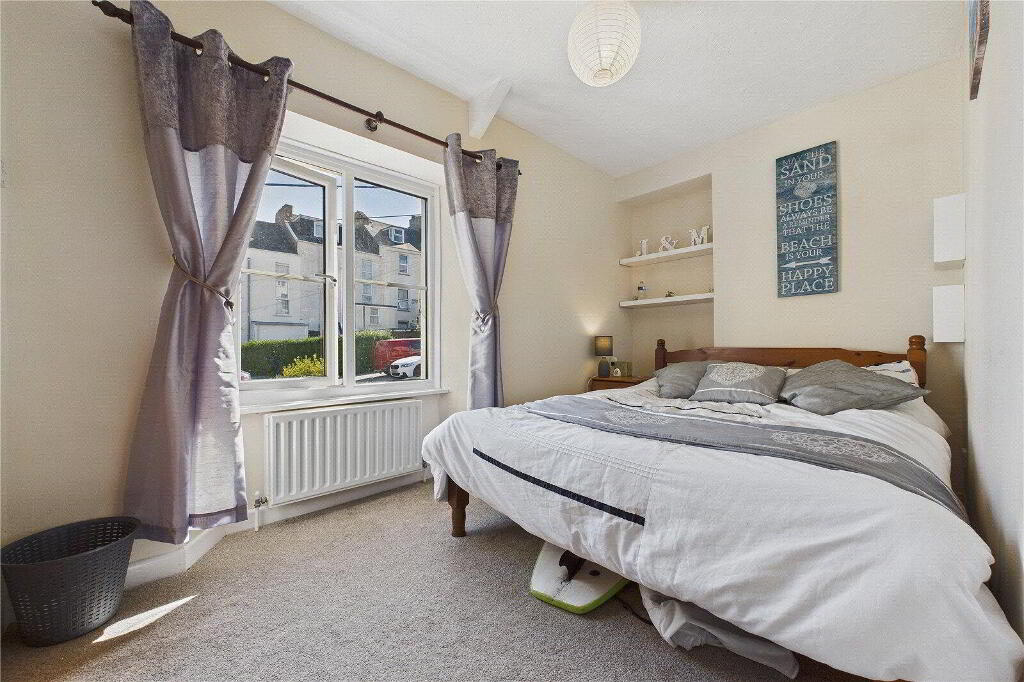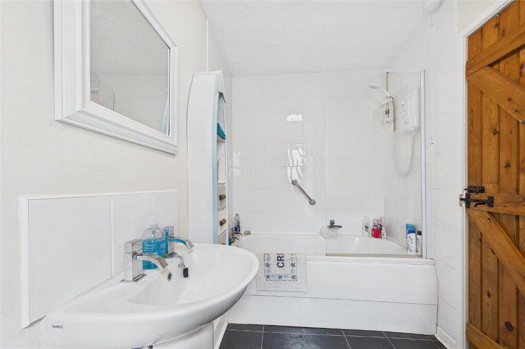 Upstairs, two generously sized double bedrooms provide flexible accommodation. The principal bedroom includes built in wardrobes for excellent storage, while the second bedroom lends itself perfectly as a guest room, study, or nursery. The family bathroom is fitted to a high standard, incorporating a classic panel bath and a luxurious rain shower for a spa like feel.