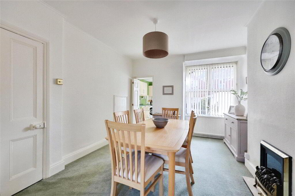 This charming property features a bright and spacious Living Room to the front, enhanced by a large bay window that adds a touch of character. A separate Dining Room, with sliding doors, offers a flexible layout, perfect for entertaining or everyday living. The well-proportioned Kitchen provides ample space for additional dining and utility use, along with useful understairs storage.