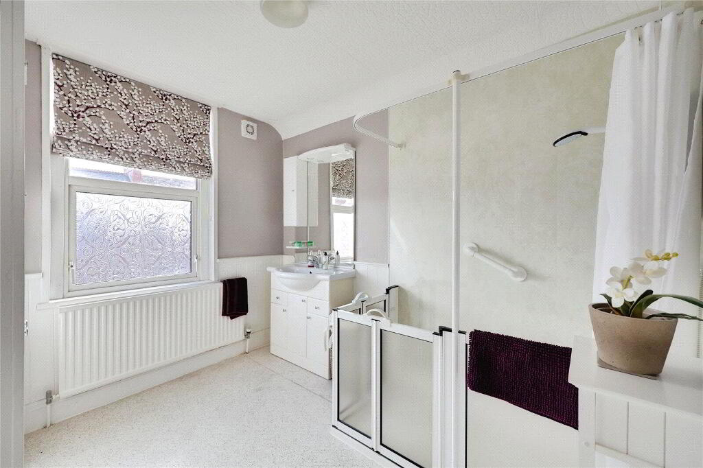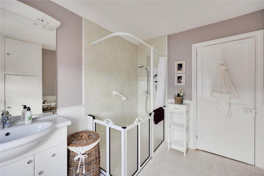 Upstairs, you'll find 2 generous double Bedrooms, including a light-filled dual-aspect primary room, and a Shower Room that has been thoughtfully adapted for accessibility, plus a separate WC.