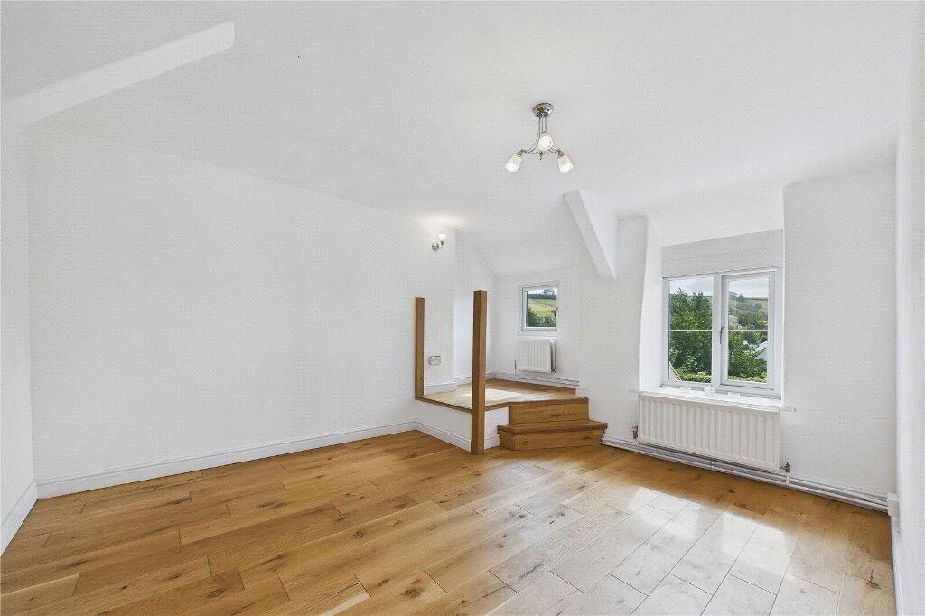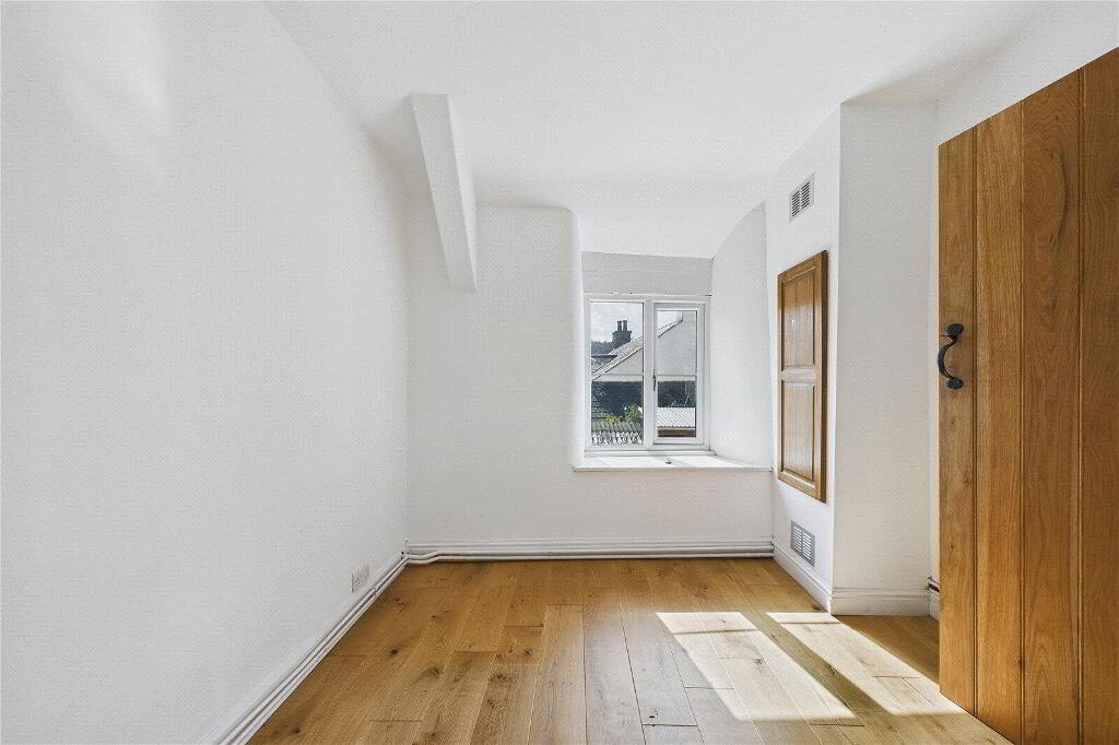 Upstairs, two beautiful bedrooms create peaceful retreats. The principal bedroom is light and airy, its windows opening to rooftop and countryside views, while the second bedroom offers its own unique character.