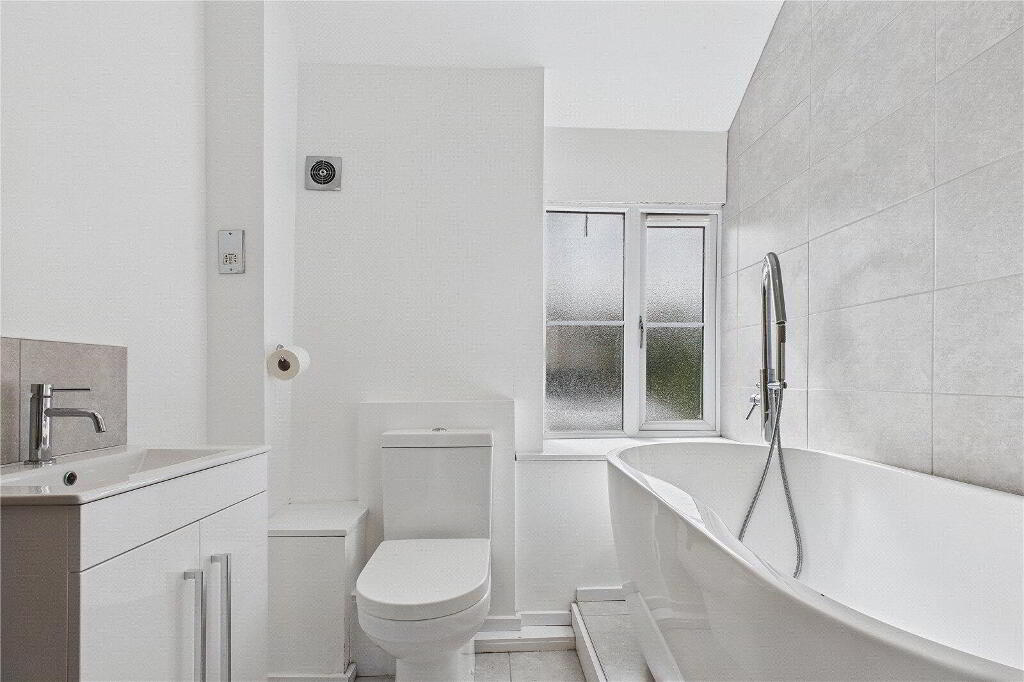 The bathroom combines period elegance with contemporary luxury, featuring a statement bath and separate shower designed for indulgent relaxation.