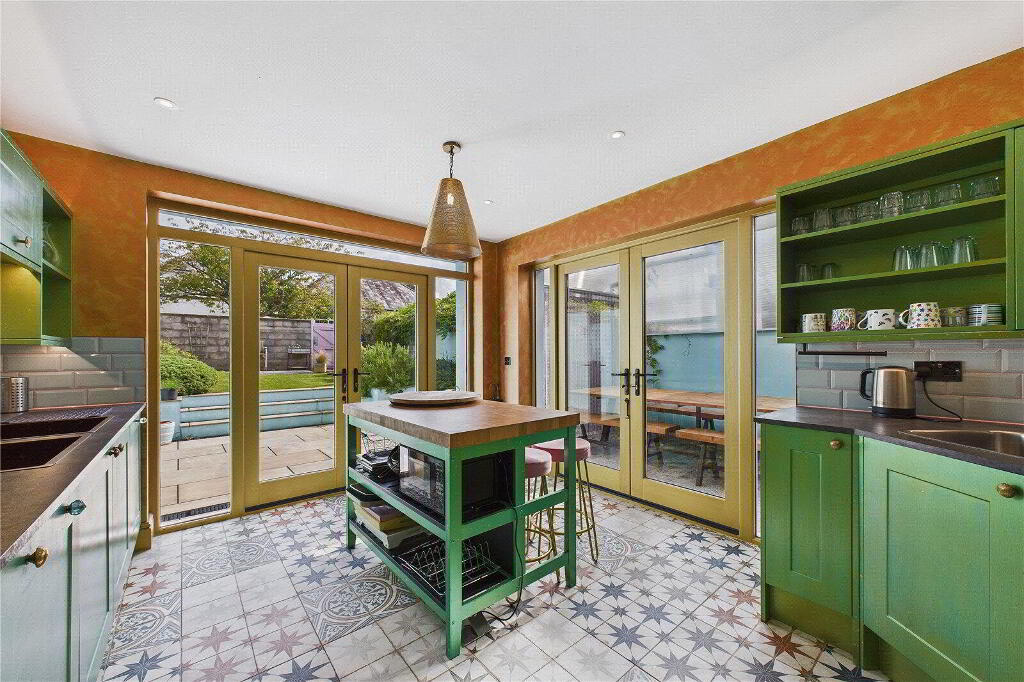 The ground floor has been thoughtfully designed for both refined living and entertaining. The spacious kitchen is superbly appointed with modern appliances and a stylish breakfast counter, creating an elegant yet functional hub of the home. From here, doors open into a covered and heated garden room, seamlessly blending indoor and outdoor living to provide a versatile space that can be enjoyed in every season. The adjoining dining room offers a sophisticated setting for formal or informal occasions, while the living room at the front of the property exudes comfort and charm, with generous seating and a welcoming atmosphere. A well-equipped utility room adds further convenience with additional storage, laundry facilities, and a walk-in shower and WC.
