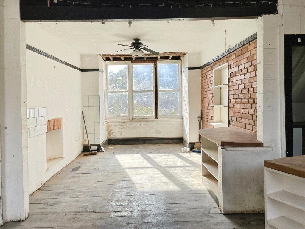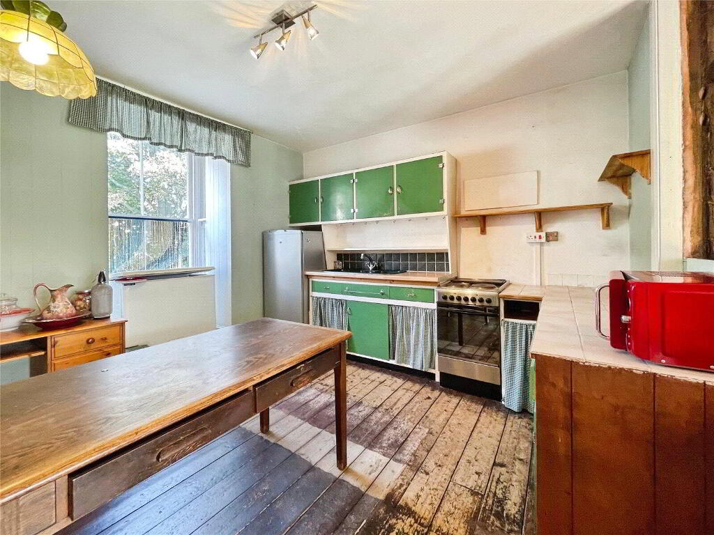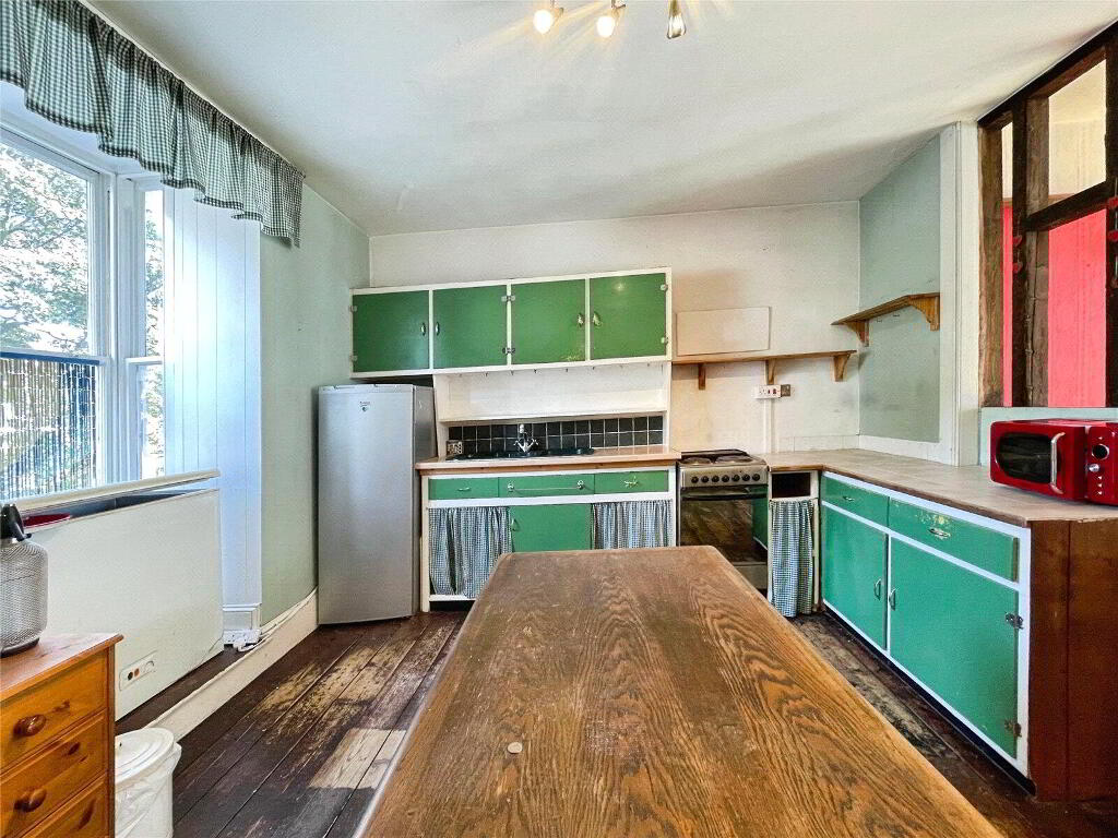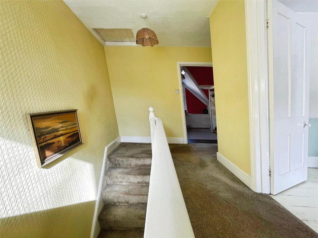 The main residential accommodation is arranged as a spacious three-bedroom maisonette spanning the first and second floors. A welcoming entrance hall provides useful storage and leads to the main living areas. The first floor features a well-presented kitchen with a range of units, character beams and exposed floorboards, opening through to a bright lounge where a large bay window frames impressive views across Lynton and the surrounding countryside. A utility room, separate WC and family bathroom are also found on this level. Upstairs, three well-proportioned bedrooms provide comfortable family living, two with front-facing sash windows and the principal bedroom positioned to the rear with far-reaching outlooks.
