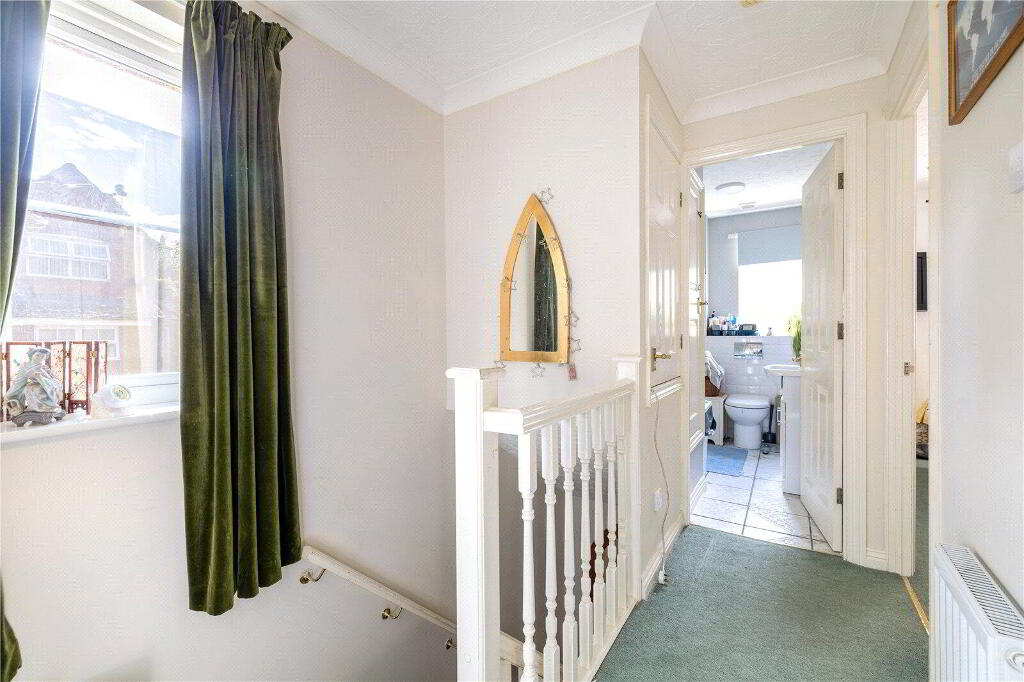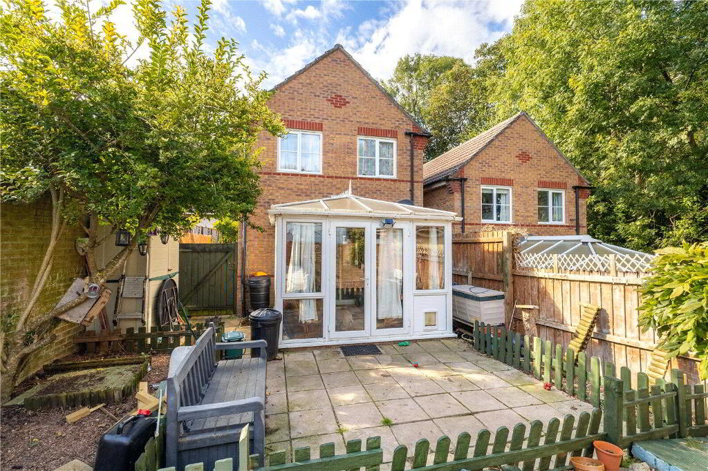 The property has been thoughtfully updated throughout, featuring a new kitchen, bathroom, and en-suite shower room, along with a new gas-fired boiler, radiators, and a Hive thermostatic heating system for year-round comfort. The spacious lounge and dining area form the heart of the home, creating an inviting space for family time or entertaining, with sliding doors leading to a bright conservatory that overlooks the private rear courtyard garden. The modern kitchen is well-equipped for busy family life, and the ground-floor cloakroom adds everyday convenience.