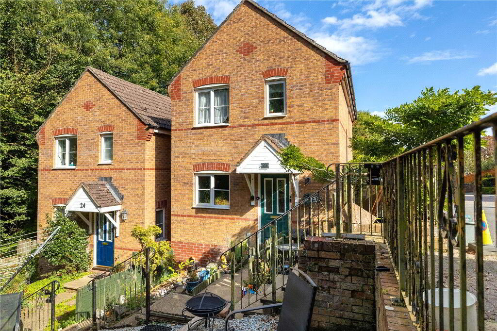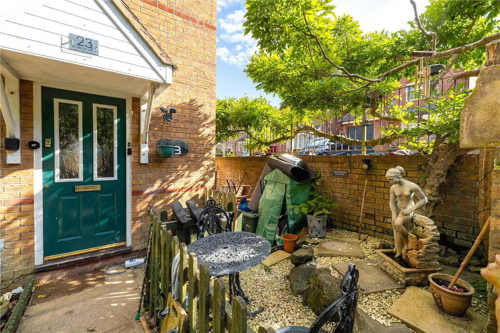 Outside, there’s plenty of space for children to play or parents to relax, with a secure courtyard-style garden to the rear, an attractive low-maintenance front garden, and an additional area of land to the front offering great potential for further landscaping or family use. A single garage and driveway parking complete the picture.