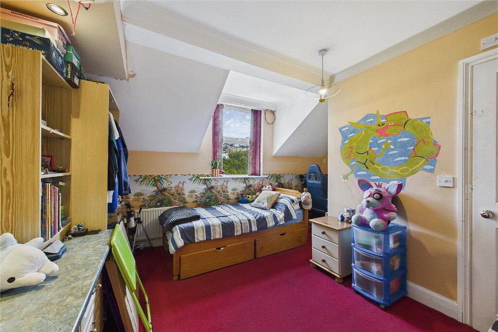 Externally, the property benefits from a tiered rear garden with several seating areas that provide a pleasant and private outdoor space, perfect for relaxing or entertaining. From the upper levels of the garden, there are attractive sea views which enhance the overall appeal. To the rear, the property enjoys the rare advantage of two off-road parking spaces, offering both convenience and practicality.