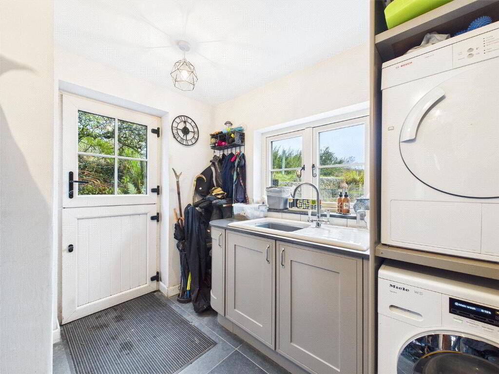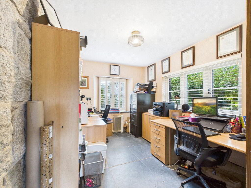 The ground floor also includes a separate study/office, utility room, and WC, plus a flexible interconnected L shaped area leading to a useful storage room, large bathroom and double bedroom with sitting area. This area also has its own entrance to the front and could serve as a self-contained annex or additional living space (subletting not permitted).