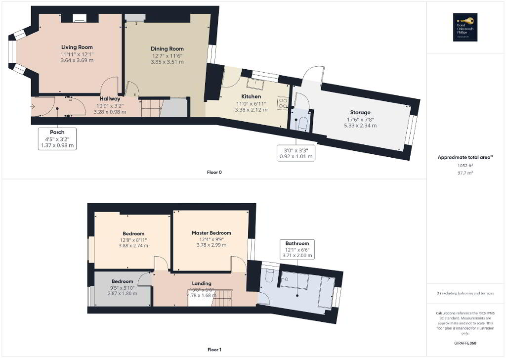 Stairs rise to a landing area leading to three bedrooms and a modern family bathroom. There are two good-sized double bedrooms, each offering comfortable proportions and space for wardrobes, along with a versatile single bedroom that could easily serve as a home office, nursery, or hobby room.