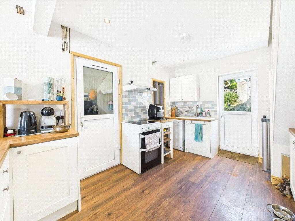 The open-plan kitchen is bright and airy, complete with a convenient breakfast area, ideal for casual dining or morning coffee.