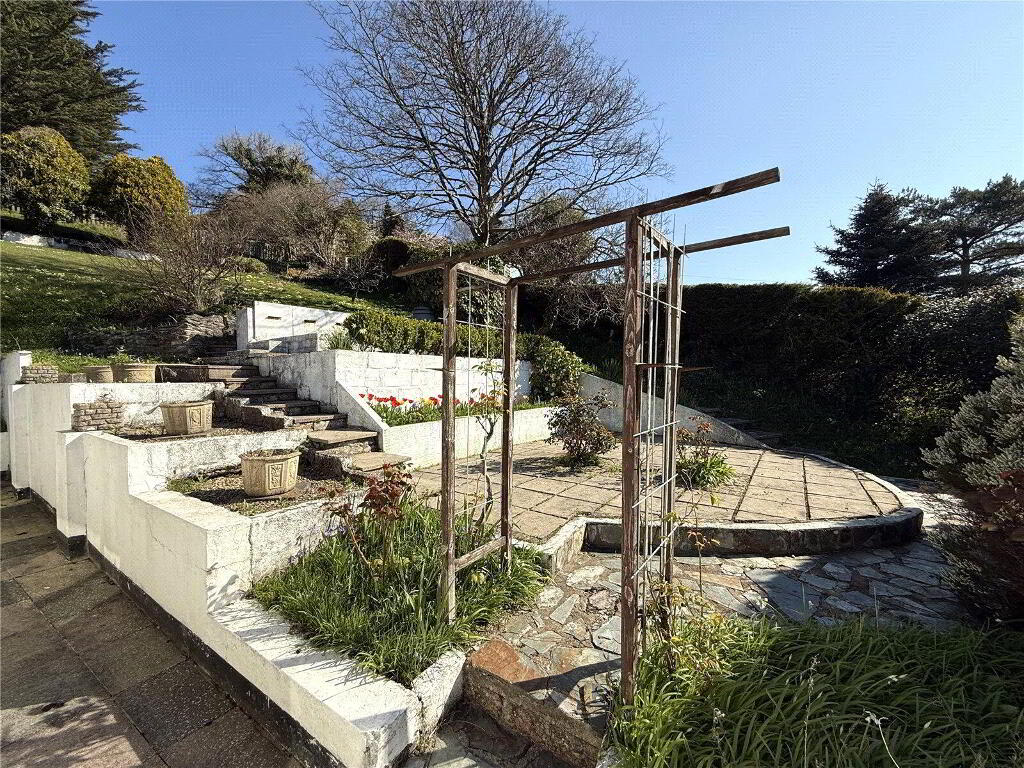 The property's exterior is just as impressive as its interior. The tiered front garden enhances the property's curb appeal, while the rear garden offers an elevated vantage point with panoramic views of the surrounding countryside. A double garage provides ample space for vehicles or additional storage.
